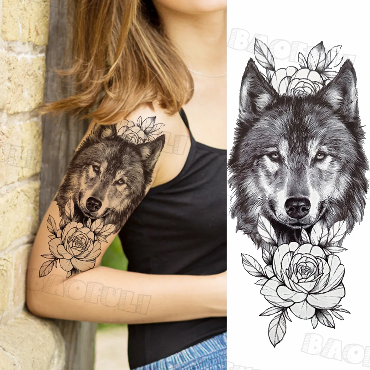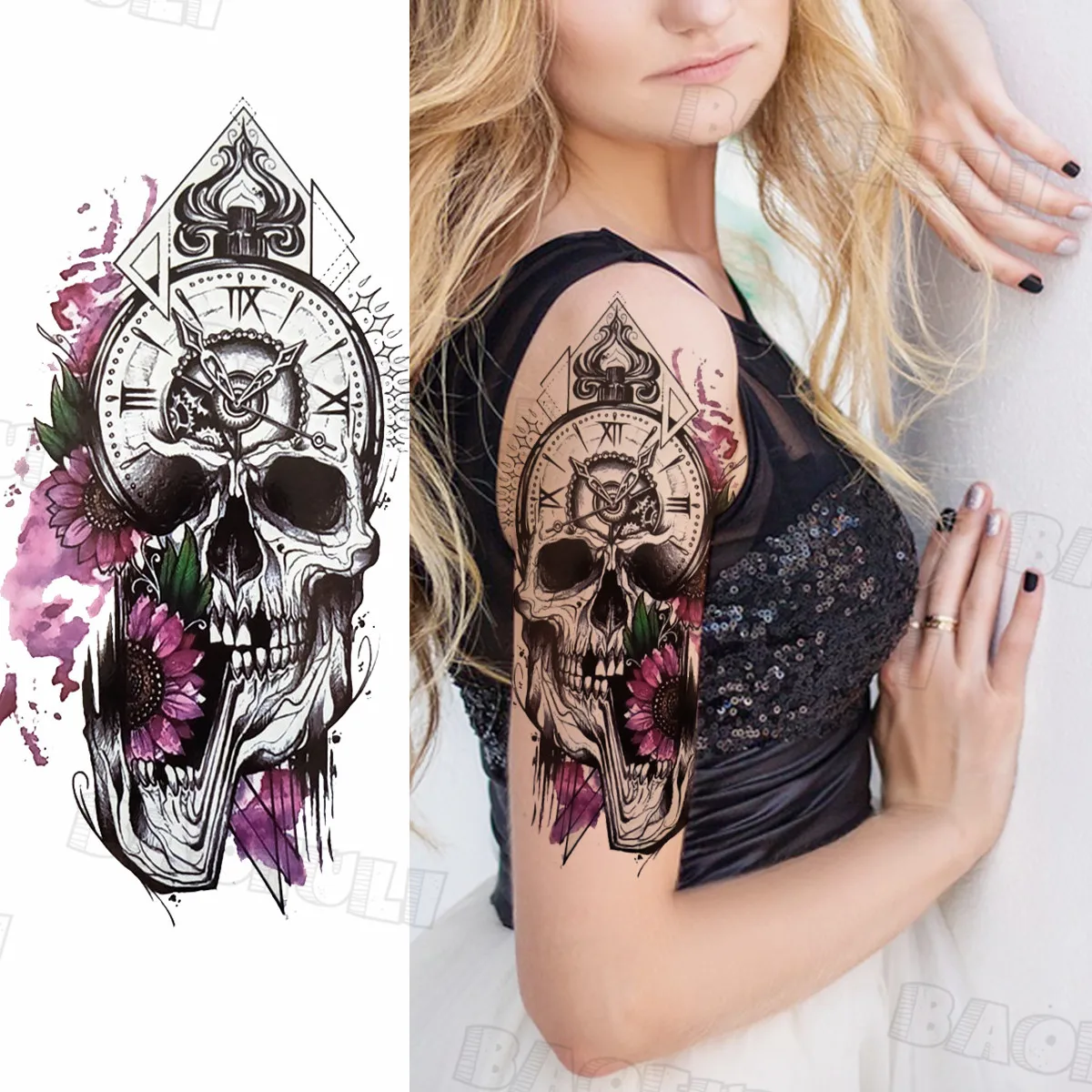 Геометрический череп, компас, временные татуировки для женщин, взрослых, Волчья Роза, реалистичные поддельные татуировки, наклейка, водонепроницаемый боди-арт тату, наклейка