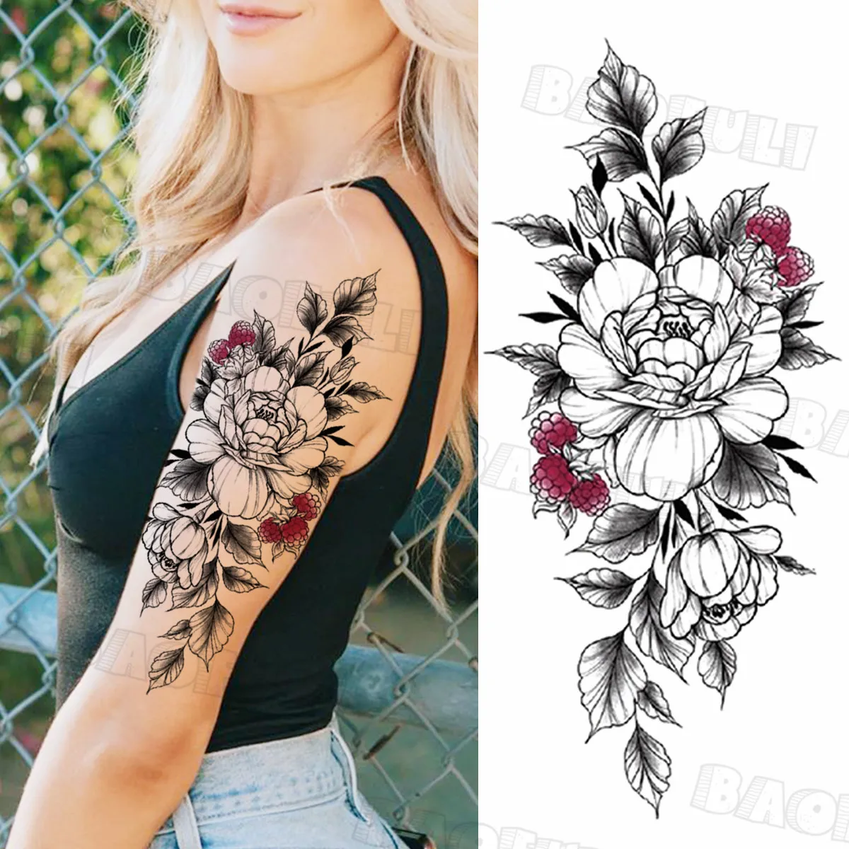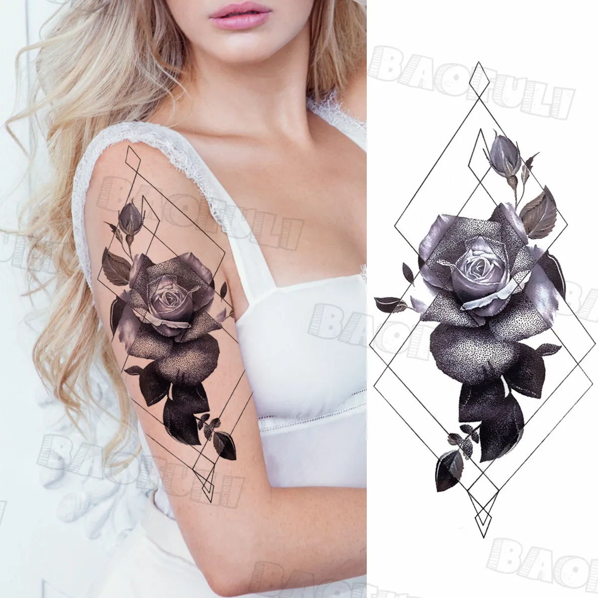 Акварель роза перо кошка Временные татуировки для женщин Взрослый пион компас покер Реалистичная поддельная Татуировка Сексуальная Половина рукава тату