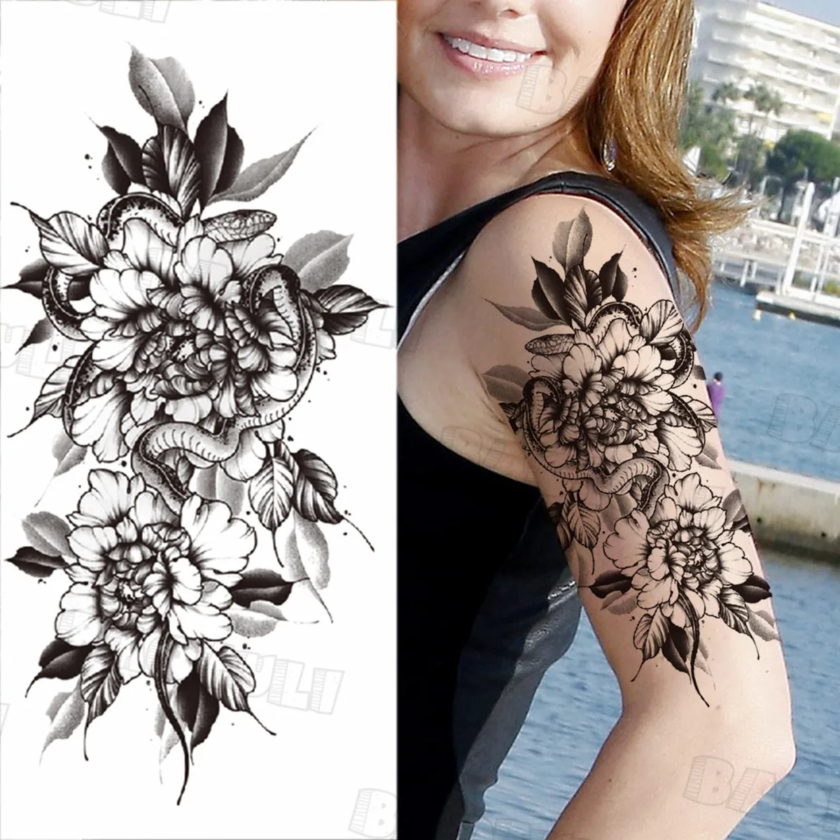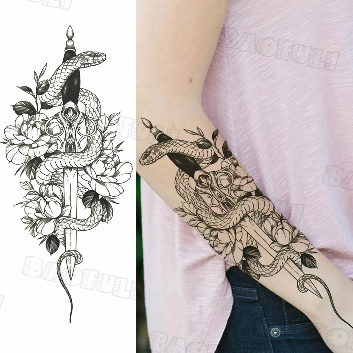 Черные Геометрические глаза временные татуировки для женщин взрослые Роза змея Подсолнух поддельные татуировки стикер боди-арт рисунок моющиеся тату
