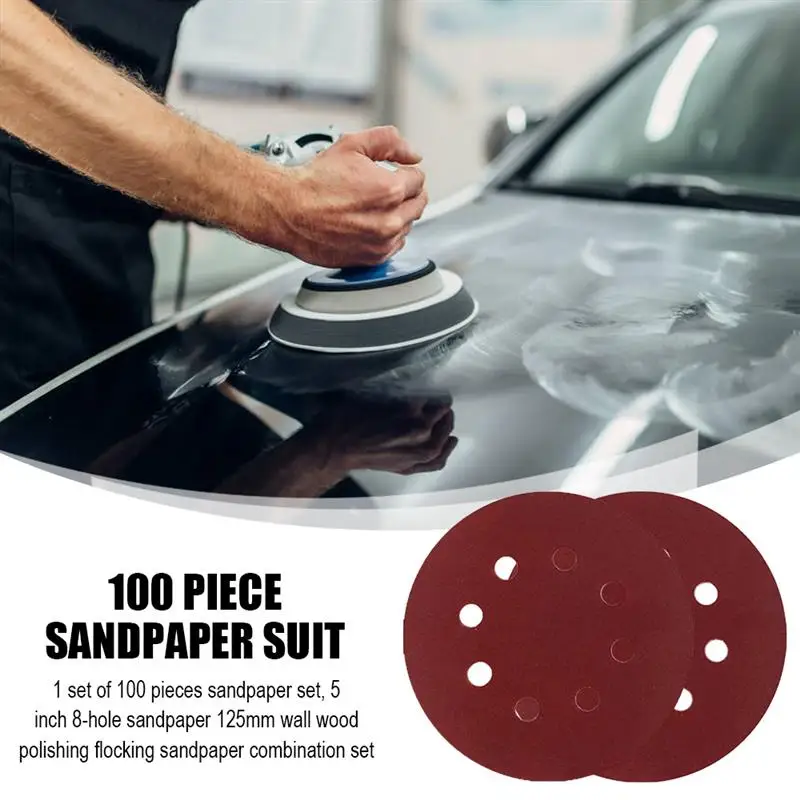 100 шт 5 дюймов 125 мм круглое шлифование наждачной бумагой диски восемь отверстий диск 40-180 зернистая шлифовальная бумага шлифовальный диск абразивные полировальные инструменты