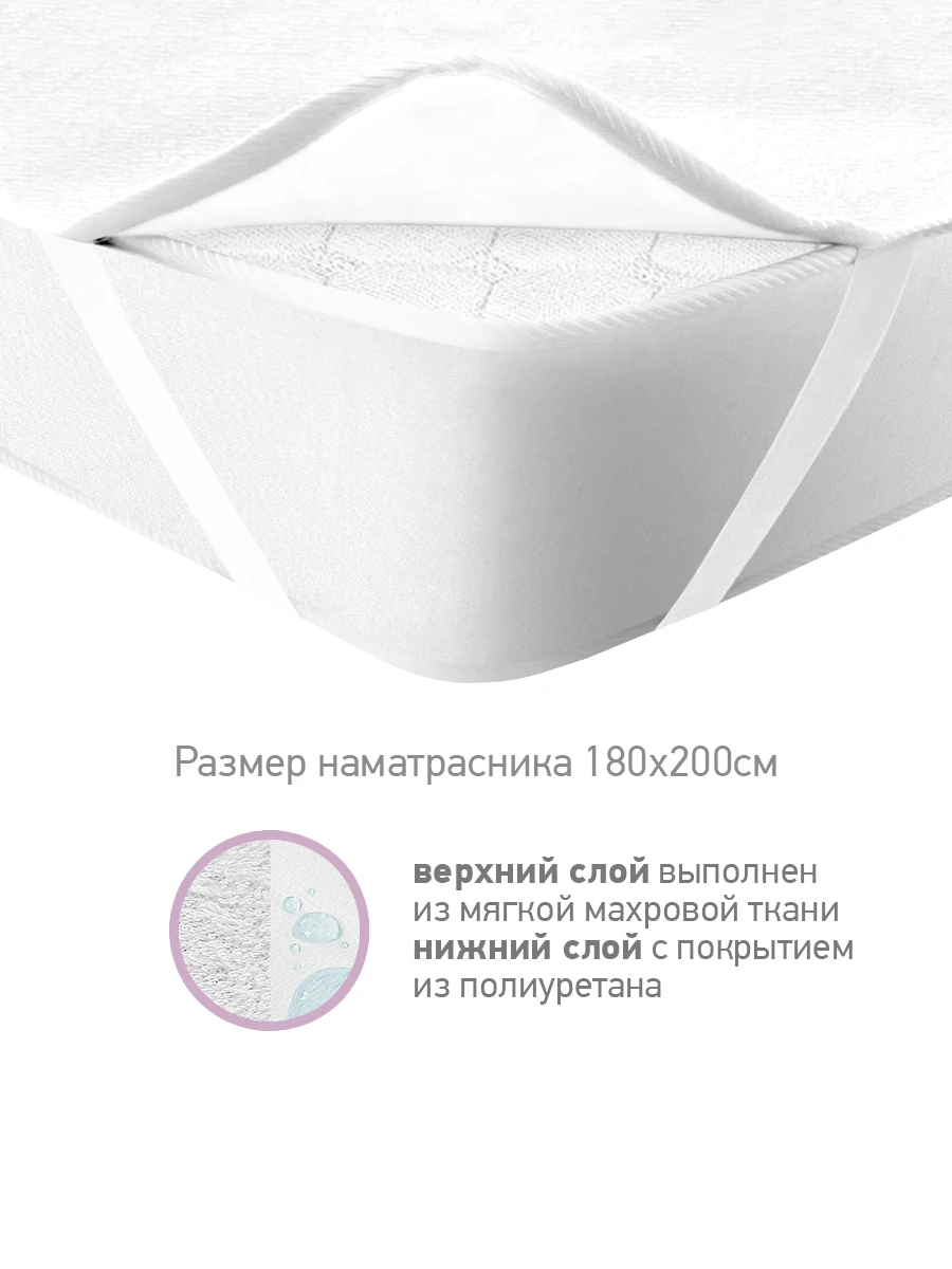 Водонепроницаемый наматрасник "Ол-текс"с защитным покрытием и мембраной"AquaStop"для матрасов высотой до 28 см . Верхний слой наматрасника дополнительно обработан ультрафиолетом для защиты от вирусов ,бактерий , что предотвращает появление пылевых клещей. Махровая ткань препятствует скольжению простыни и идеально подойдет тем, кто активно двигается во сне и поддерживает комфортную для сна температуру. Не вызывает аллергии. Благодаря подкладу из эластичной мембраны наматрасник не пропускает влагу, надежно сохраняя матрас чистым. Наматрасник оснащен прочными резинками для углового крепления. Материал подходит для обработки дезинфицирующими средствами. Подходит деликатная стирка в стиральной машине при температуре 40 градусов.