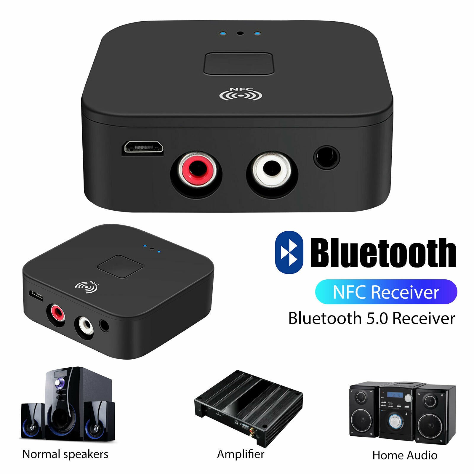 Поддержка NFC: Встроенный Чип, вы можете подключить к NFC мобильный телефон или другую поддержку NFC Устройство Bluetooth непосредственно прикоснувшись к этому приемнику. Воспроизведение музыки на 2 Колонками одновременно: с 3,5 мм и 2RCA 2 виды соединения Вы можете наслаждаться музыкой на 2 динамиках одновременно. Двойной аудио порт Sup Для подключения: поставляется с 3,5 мм и 2RCA аудио порт, подходит для большего количества Устройства (3,5 мм кабель и 2RCA кабель входит в комплект). Беспроводная связь на большие расстояния Подключение: Эффективное расстояние до 10 метров/33 футов, управление Воспроизведение музыки на большом расстоянии. Поддержка автоматического включения/выключения: Используйте кабель зарядного устройства для подключения к вашему автомобилю или другой мощности, при запуске Автомобиль или он имеет мощность, он автоматически включается и автоматически подключается к Устройство, которое вы последний раз подключили. Когда автомобиль выключен, он автоматически включится ВЫКЛ. Новейший Bluetooth 5,0 Версия: Совместимость с Bluetooth версии 5,0, обратная совместимость с Bluetooth 4,2/4,1/4,0/3,0/2,0/1,0.Спецификация продукта