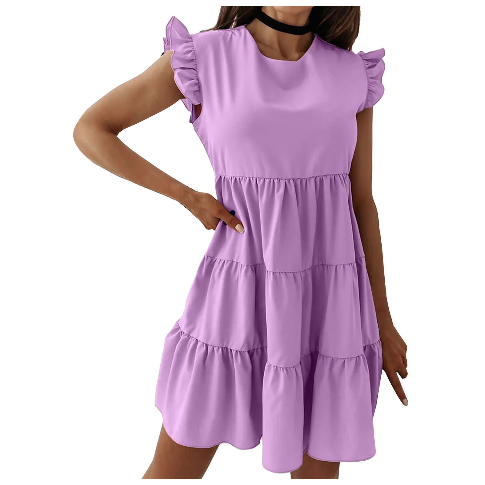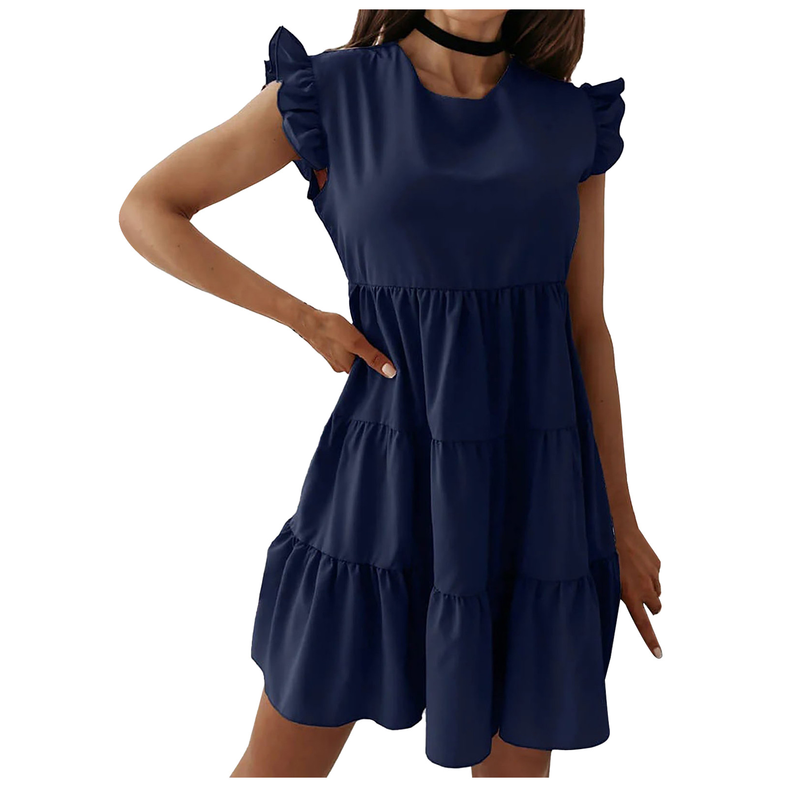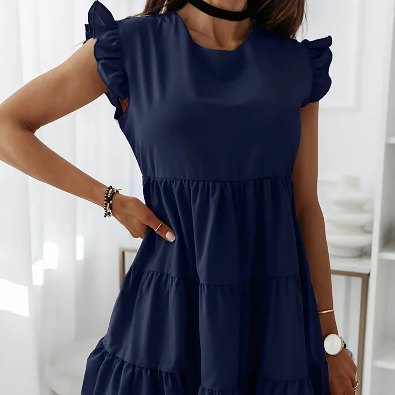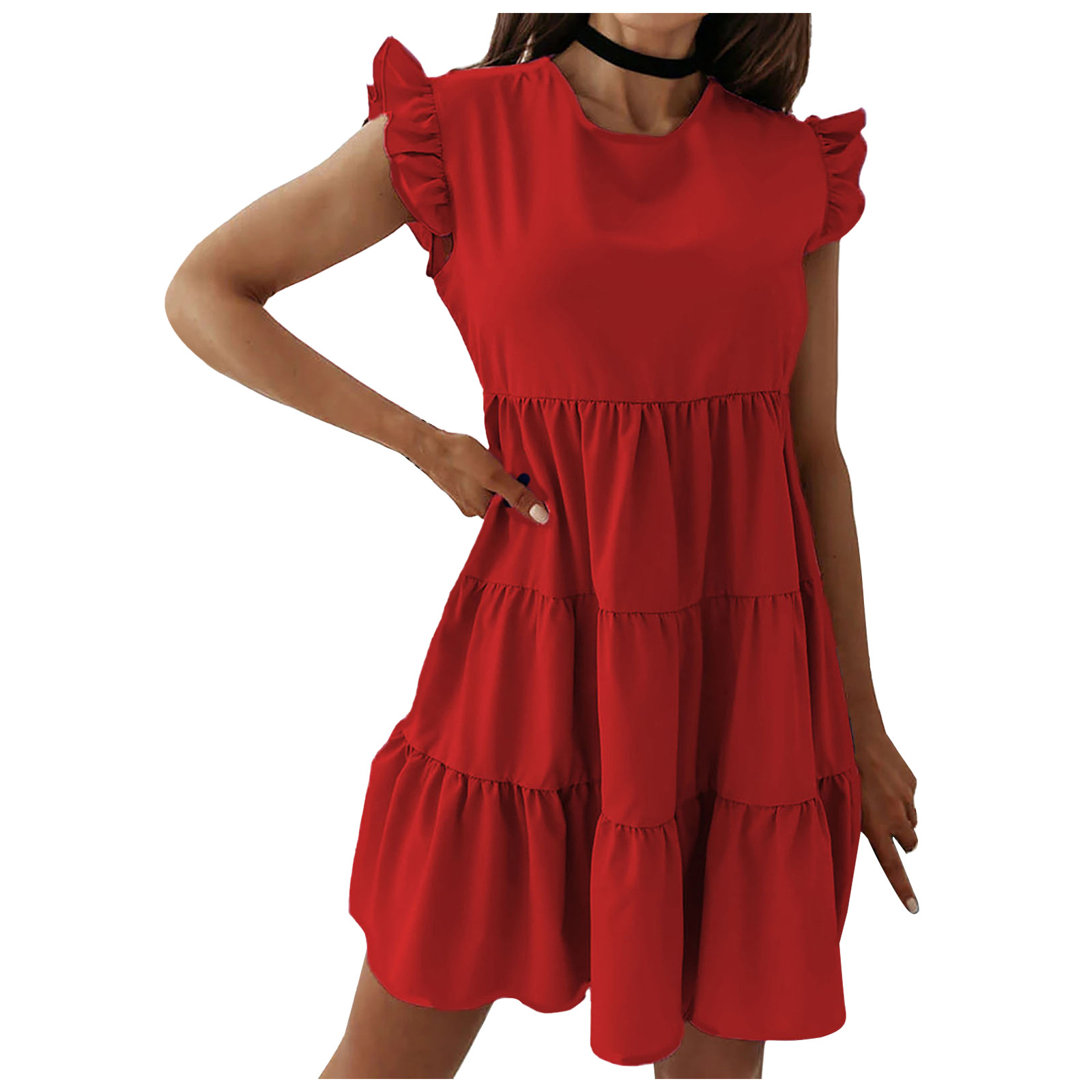 Женское сексуальное однотонное платье без рукавов с рюшами и круглым вырезом, мини подвязки