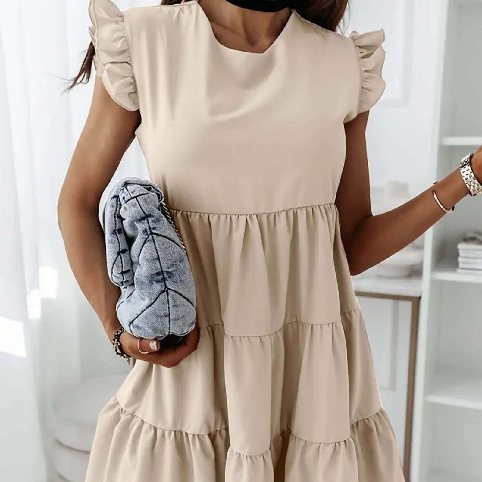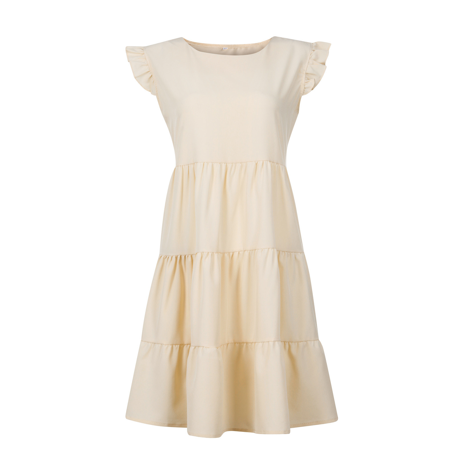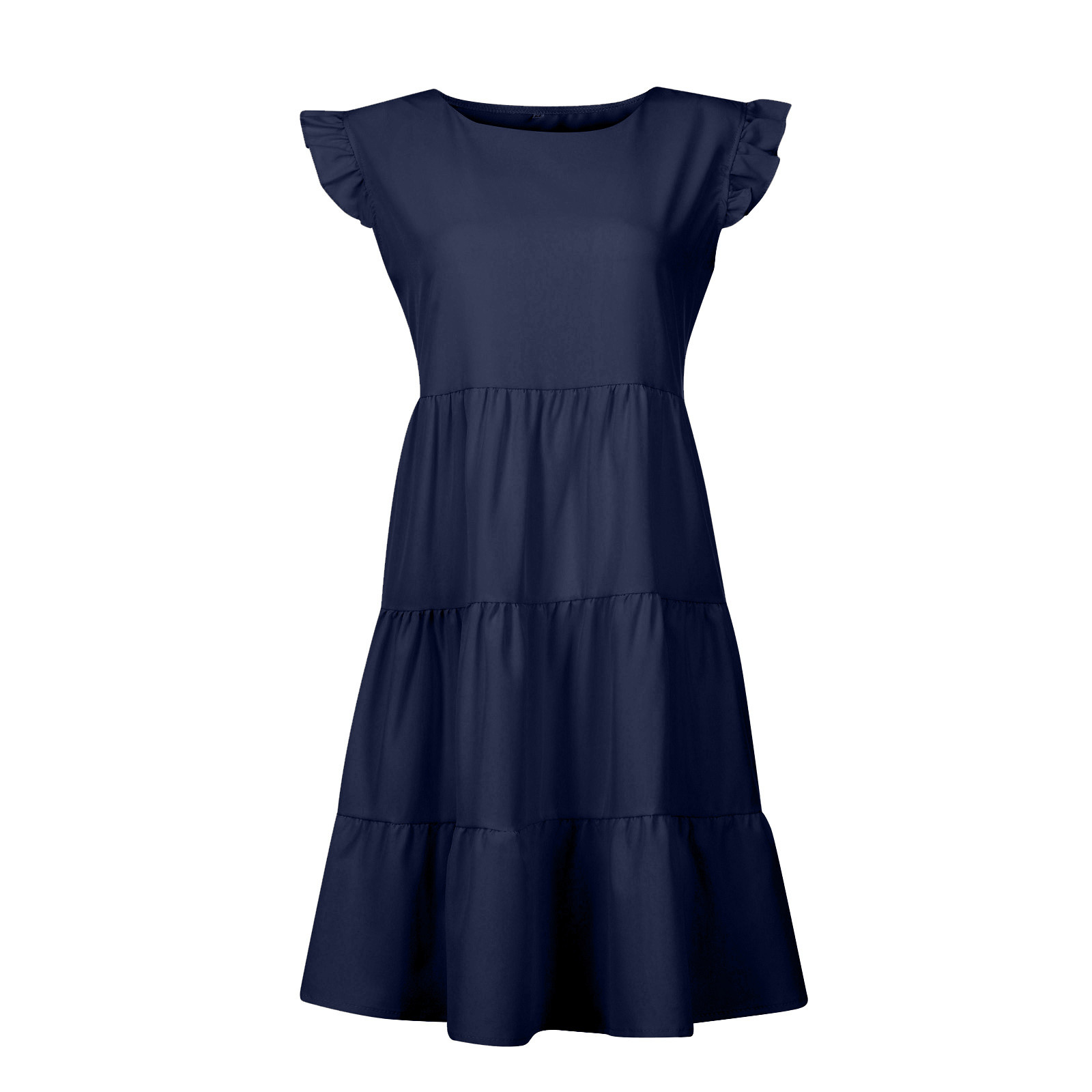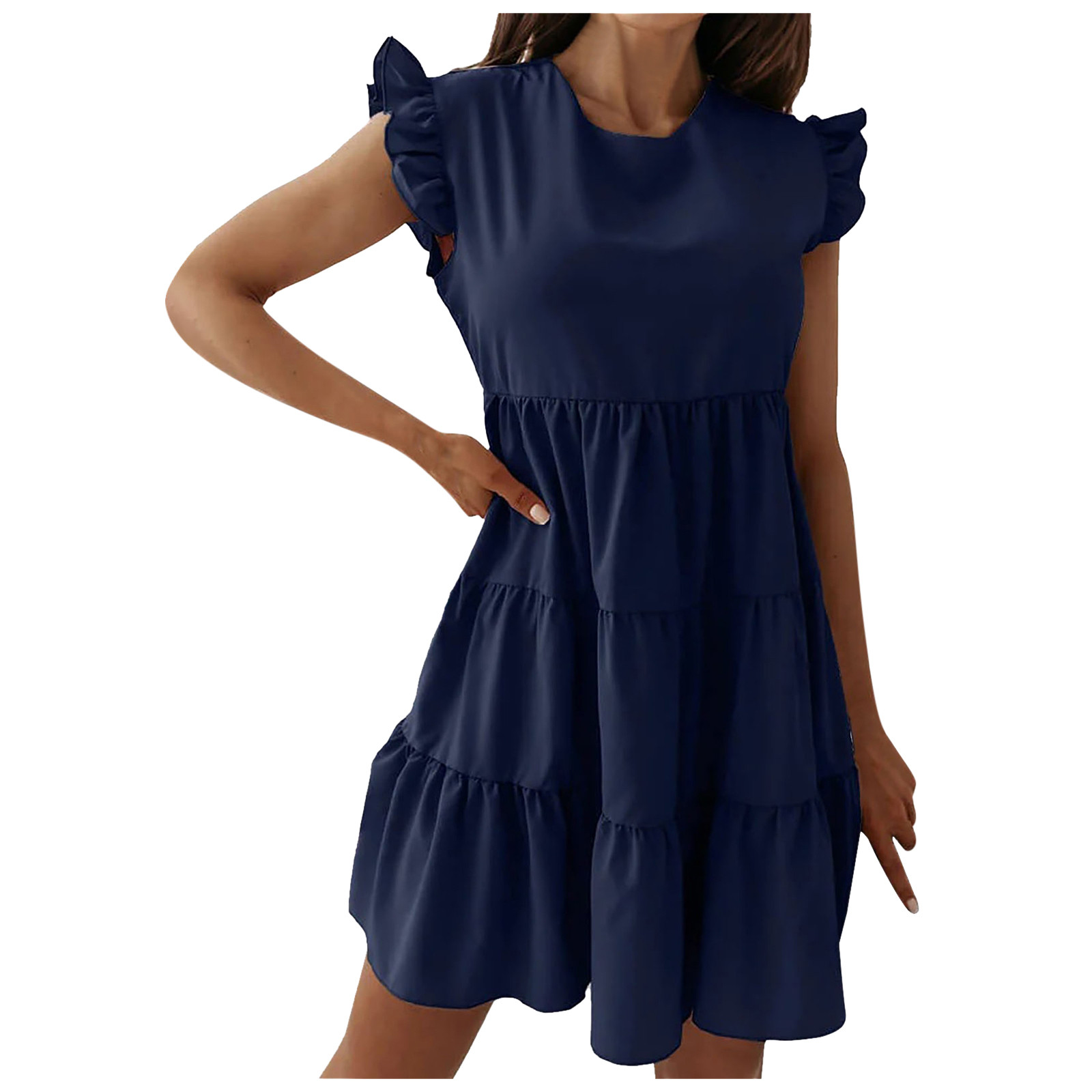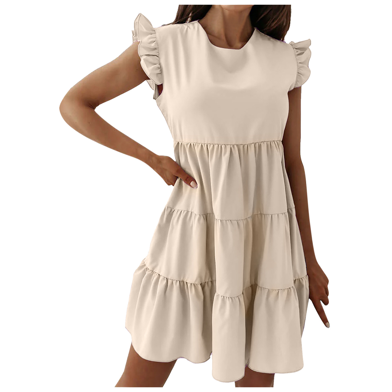 Женское сексуальное однотонное платье без рукавов с рюшами и круглым вырезом, мини подвязки
