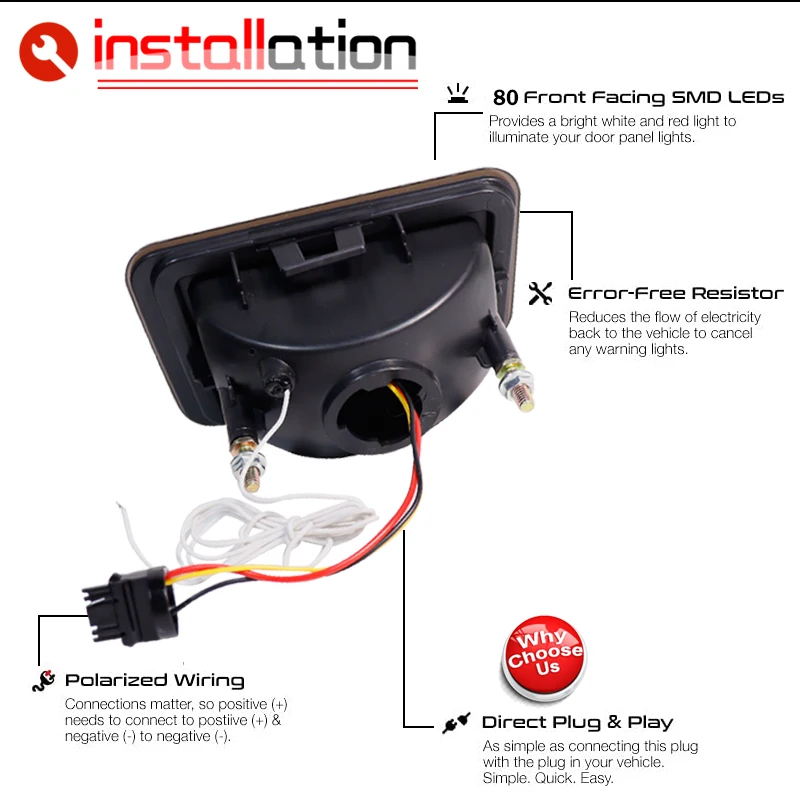 Питание от 180 SMD LED диодов высокой мощности с янтарным желтым светодиодом на передних крыльях и красным светодиодом на задних крыльях, которые образуют идеальную фокусную полосу с супер ярким выходом освещения для замены OEM боковые маркеры с 2 светодиодами