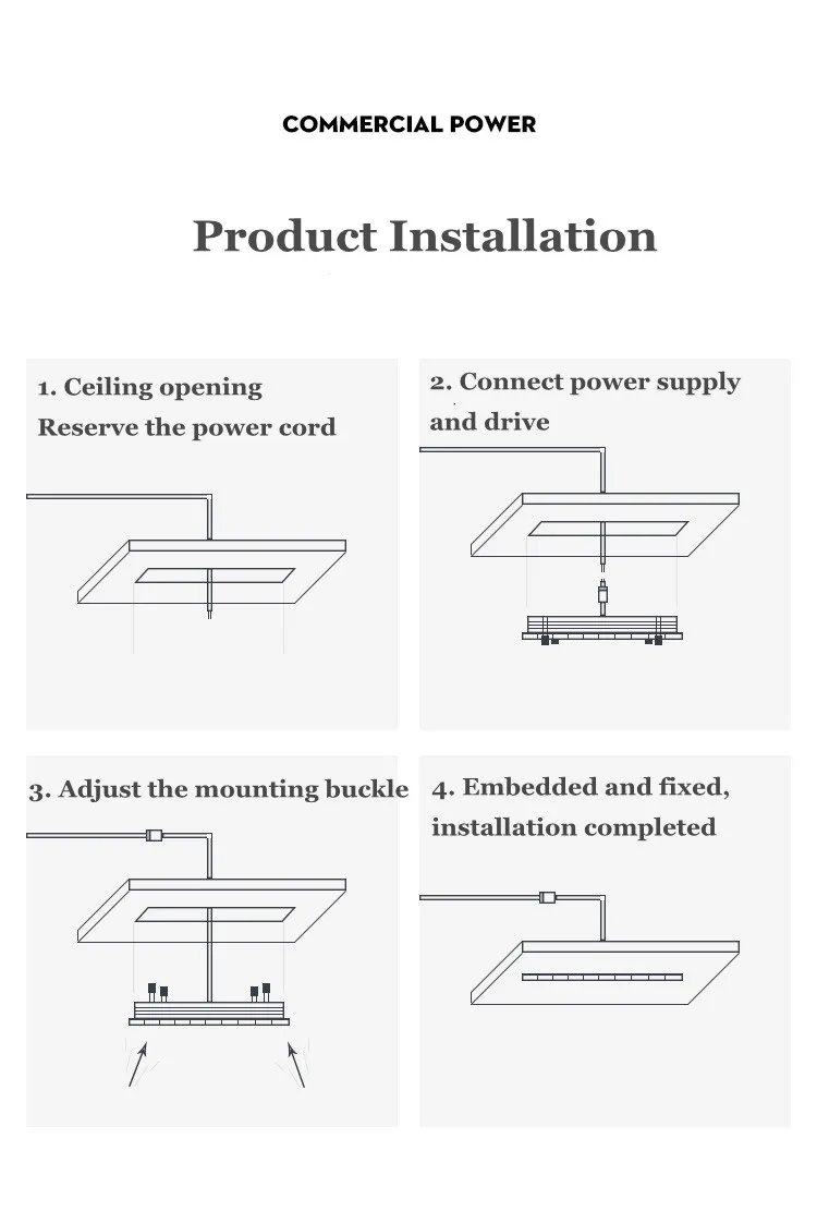 Легко устанавливается. Потолочное крепление. Драйвер встроенный, поддержка 85-265 В переменного тока