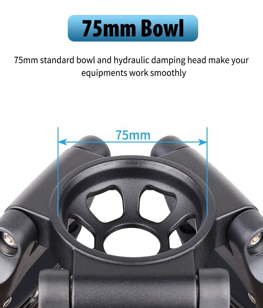 【Thicken Carbon Tube】The tube is made of high quality carbon fiber, the diameter of this tripod is 14mm and 18mm, it is a professional strong photographic video tripod. 【High Capacity】This video tripod is made of 5 strong carbon tubes , the max load is 12kg, max height is 186cm, it is suitable for most DSLR cameras , camcorder , DV, video slider and etc. 【Advanced Hydraulic Head】 Equipped with a advanced wide range of motion and smooth hydraulic damping head that supports 360°panoramic, tilting up or down shooting. 【Ergonomic Buckle Design】 Adapts Ergonomic locking knob design, which can open and fold it quickly and convenient to save time and power.It also protect hands no danger while using. 【Manfrotto Standard Q.R.Plate】 Including a long quick release plate with 1/4" & 3/8" screws for fixing your camera or camcorder. 【Stability Of This Tripod】 3-section telescoping legs with special locks design for quick and easy operations. Non-slip rubber pads and adjustable mid-support system design further increase the stability of the tripod.