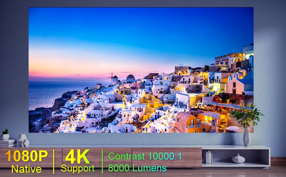 Artlii Energon 2 домашний проектор является последним WIFI видео проектором в 2021 году, используя оригинальное физическое разрешение 1920x1080 пикселей, поддержка 4K, 10000: 1 высокая Динамическая контрастность и 5 слоев высокоогнеупорного стекла. Изображение ярче и острее. Вы также можете подключиться к телевизору (не входит в комплект) для просмотра Netflix И Disney.