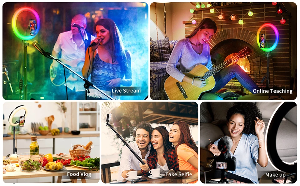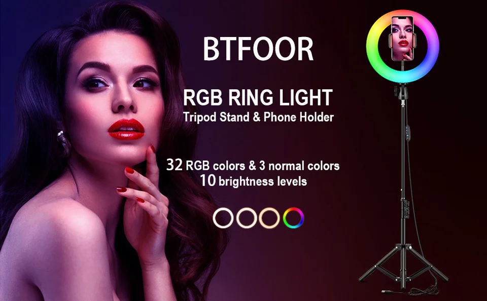 【3 светильник режимы ing & 32RGB modes】этот светодиодный кольцевой светильник с регулируемой яркостью