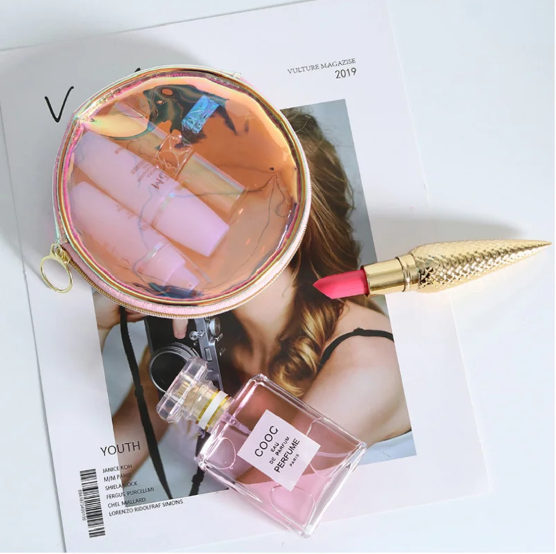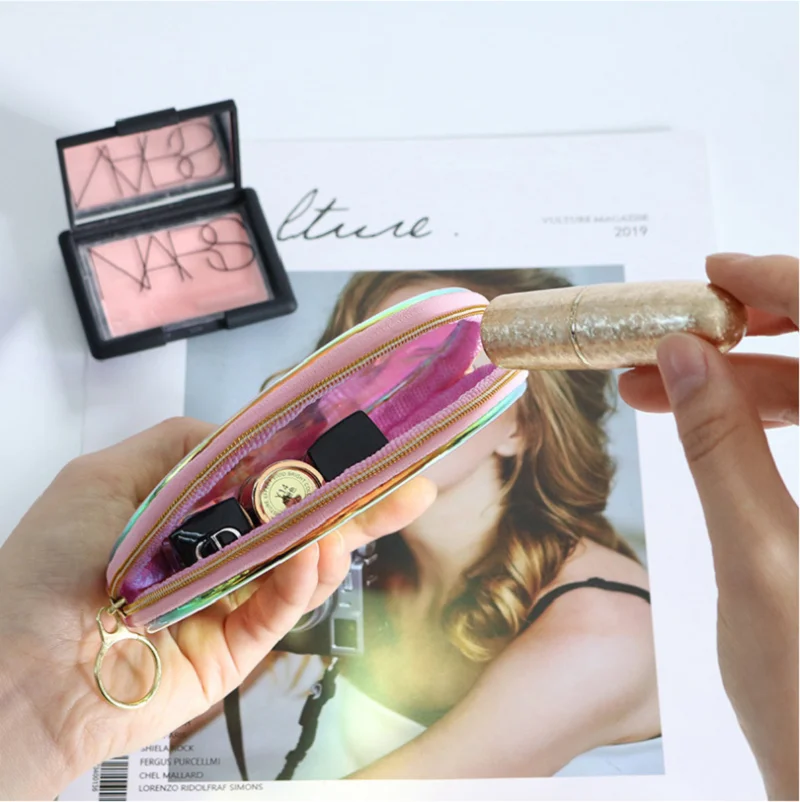 Женская портативная мини голографическая круглая косметичка, Прозрачный лазерный ПВХ косметичка для девочек, Прозрачная Круглая губная помада, сумка для хранения