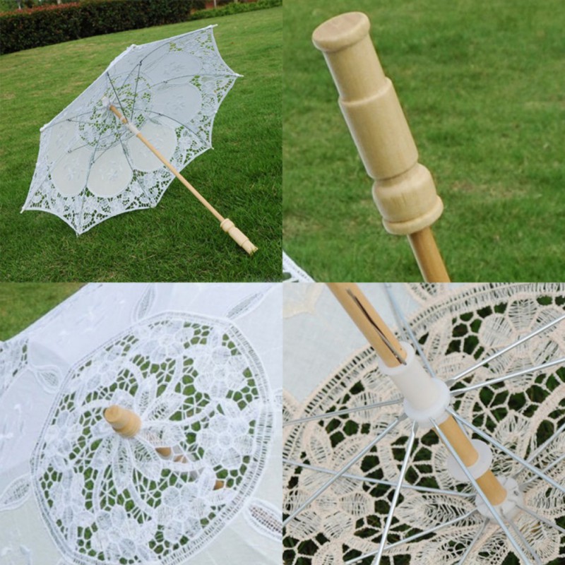 Материал: кружевной зонтик (шелковая ткань) + деревянная ручка
