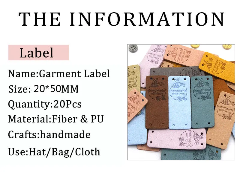 Название продукта: этикетка для одежды Размер: 20*50 мм Количество: 20 шт. Материал: искусственная кожа Изделия: уникальный дизайн, ручная работа Послепродажное обслуживание: Если у продукта есть какие-либо проблемы, просто свяжитесь с нами или оставить нам сообщение в любое время.