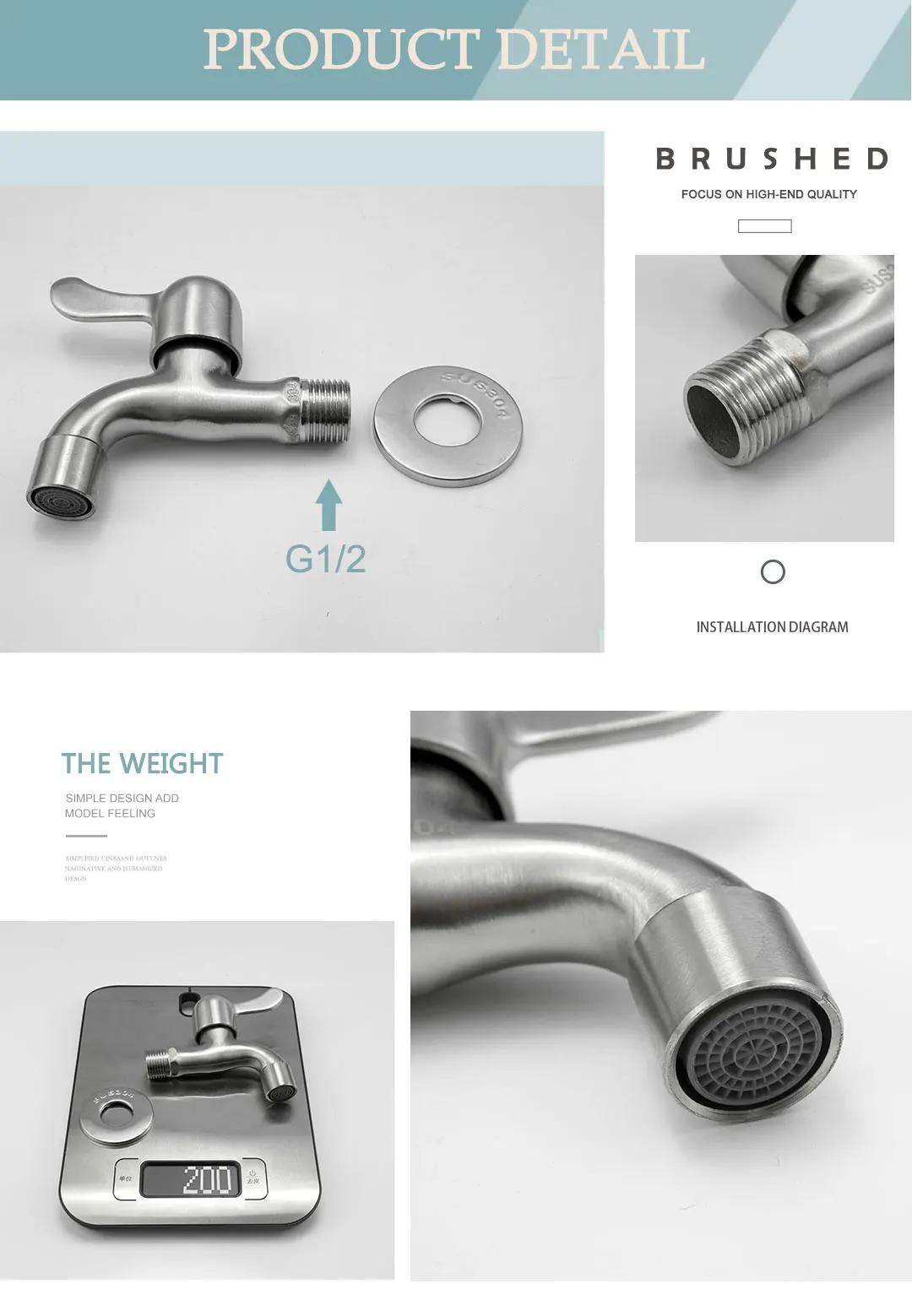 Садовый кран из нержавеющей стали, матовый наружный кран, Швабра для бассейна, стиральная машина, кран для умывальника, кран для кухонной раковины, угловой клапан для унитаза