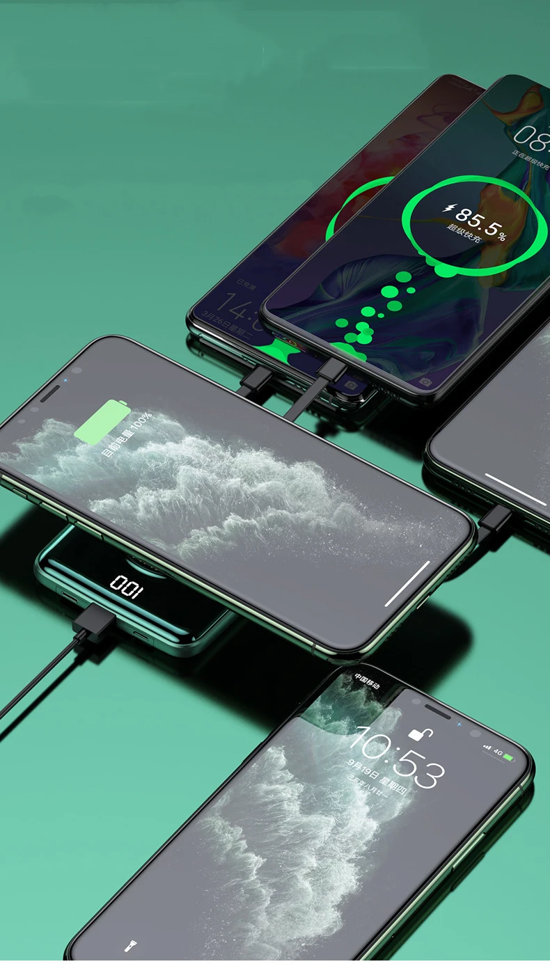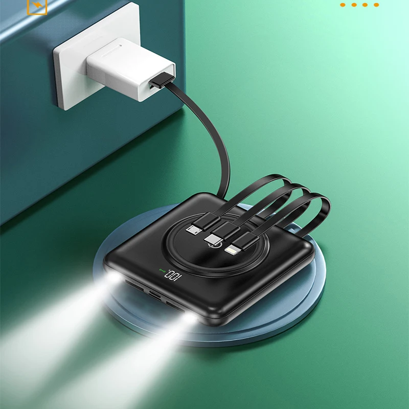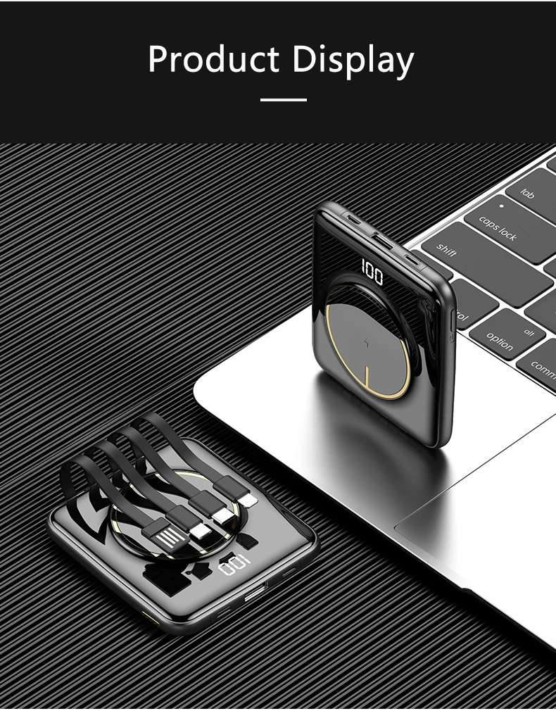 Мини банк силы 20000mAh Qi Беспроводное зарядное устройство Powerbank Встроенный кабель для iPhone 13 12 pro 11 Samsung S21 S20 Xiaomi 9 повербанк