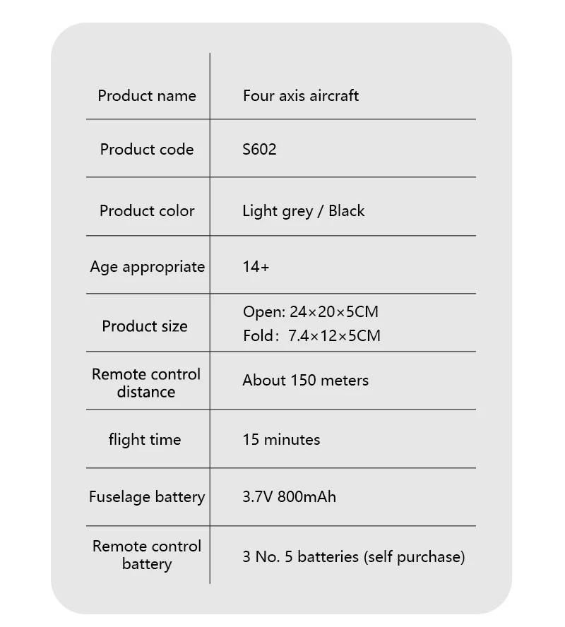Функции: вверх/вниз, вперед/назад, влево/вправо, боковой полет, светодиодный свет, Безголовый режим, автоматическое возвращение одной кнопкой, режим удержания высоты, WiFi FPV. Визуальное позиционирование. Переключение камеры.
