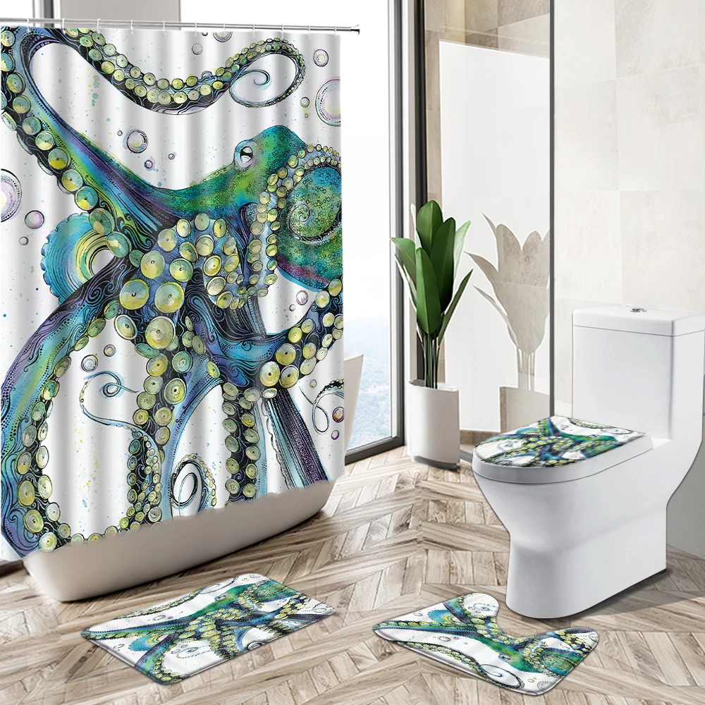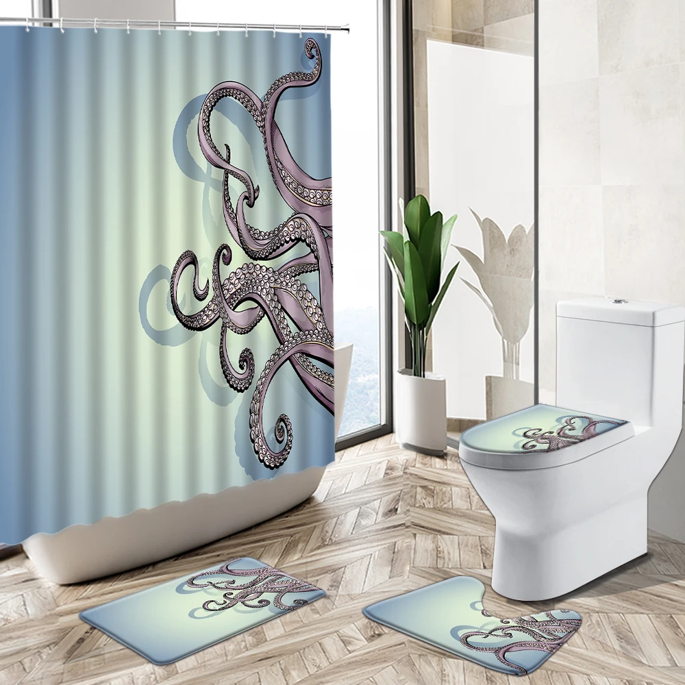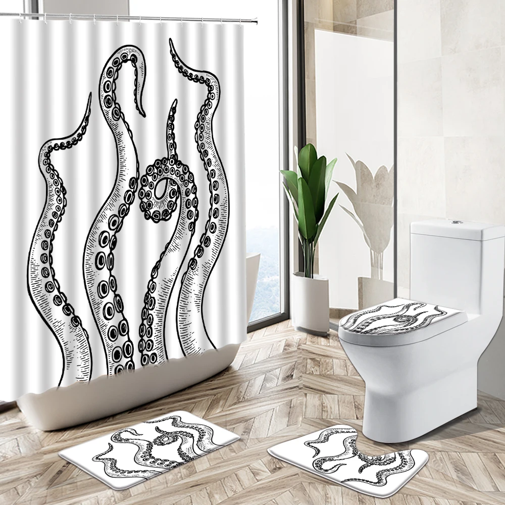 Features: 1. Flannel fabric, very soft feeling and comfortable, PVC mesh bottom, non-toxic, odorless, not moldy. 2. Easy absorb water and dust good slip resistance; 3. Easy to clean, can be directly washed by washing machine or hands, not shed and fade, the back avoid to direct sunlight. 4. High density super soft fabrics, comfortable, environmental protection, good ventilation. Specifications: Shower Curtain Material: Waterproof Polyester Fabric Bath Mat Material: Flannel And Plastic Bottom Blanket Surface Color: As picture shown Shower curtain size: 180x180cm - 70x70in Square size: 75x45cm - 29.5x17.7in Toilet cover size: 43x38cm -17x15in U shape size: 40x50cm -15.7x19.7in Note: 1.Manual measuring, please allow 1 ~ 3 cm error,thank you. 2.Try to use the shower curtain leveled ventilation to keep the surface dry. 3.Due to the different display and different light, the picture may not reflect the actual color of the item,Thanks for your understanding. 4pcs set ● 1 x Shower curtains (With 12 hooks) ● 1 x Pedestal Rug ● 1 x Lid Toilet Cover ● 1 x Bath Mat