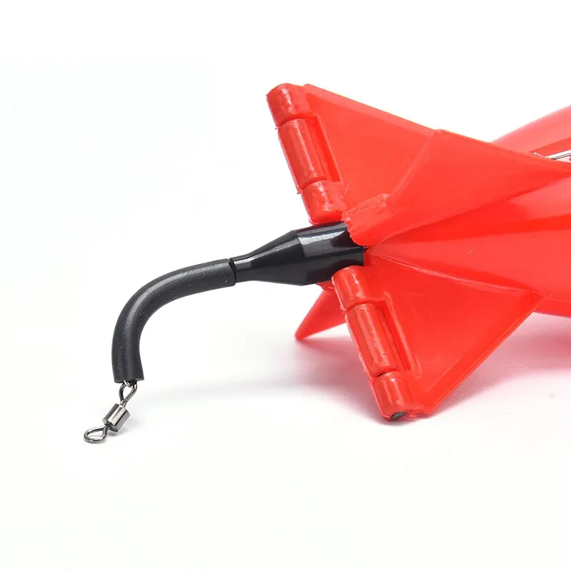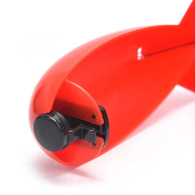 После загрузки поплавков, так как контейнер закрыт, приманка не выпадет, пока не ударит водой и не открывается. Плавает с открытым концом или с отверстиями позволяет приманке выпасть.