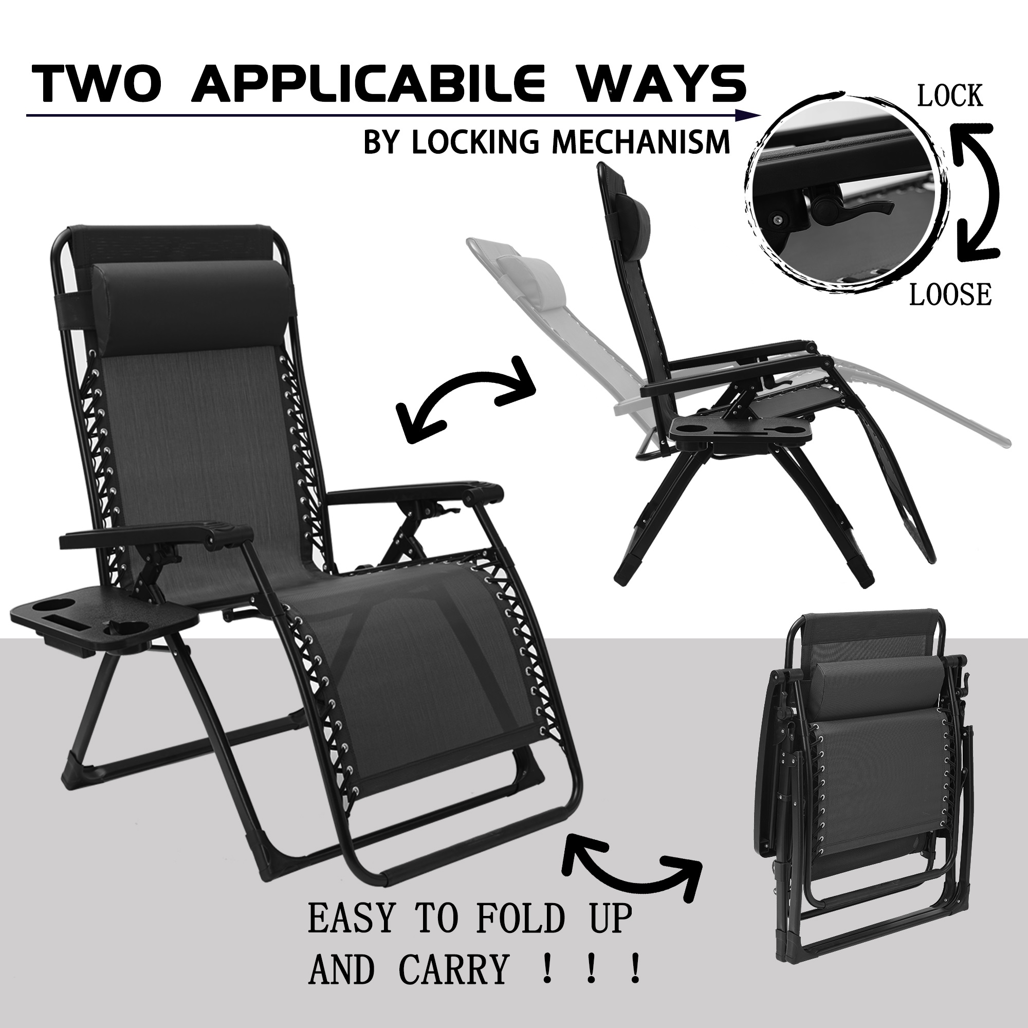 Кресло с нулевой гравитацией изготовлено из стального каркаса и текстильной ткани, которая является долговечной и удобной. Он может быть помещен в помещении или на открытом воздухе в любом месте, которое вам нравится, например, пляж, двор, патио, бассейн, Офисная зона отдыха или домашняя зона отдыха. Он имеет гладкую функцию наклона, Который можно отрегулировать от сидения до лежа в любом положении, в котором вы чувствуете себя комфортно. С ним поставляется держатель для чашки и мобильный телефон, чтобы вы могли наслаждаться питьем, когда лежали на нем. Это кресло для отдыха-хороший выбор для отдыха, облегчения, сна и развлечений.