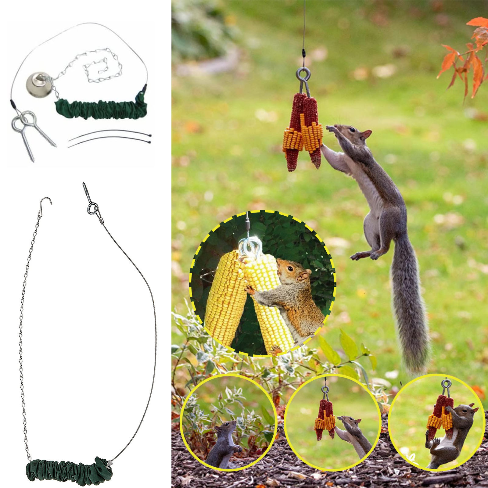 -Кормушка Для белки предназначена для безвредного и развлекательного способа кормления белок. Кабель в нижней части Кормушка Для белки достаточно жесткий, поэтому он не может обернуться вокруг тела белки. Пружина погружена в окунь, поэтому белка не может зажать пальцы.