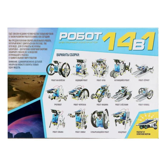 Дополнительные функции Подвижная Научная тема Техника Тип питания От солнечной батареи Материал (универсальный) Пластик Форма Классический робот Возраст От 8 лет Тематика конструктора РоботыОчень красивое, элегантное украшение! можно подарить в качестве подарка,а так же как и помолвочное!себе заказывала в качестве подарка, очень понравилось!... Читать отзыв полностью...