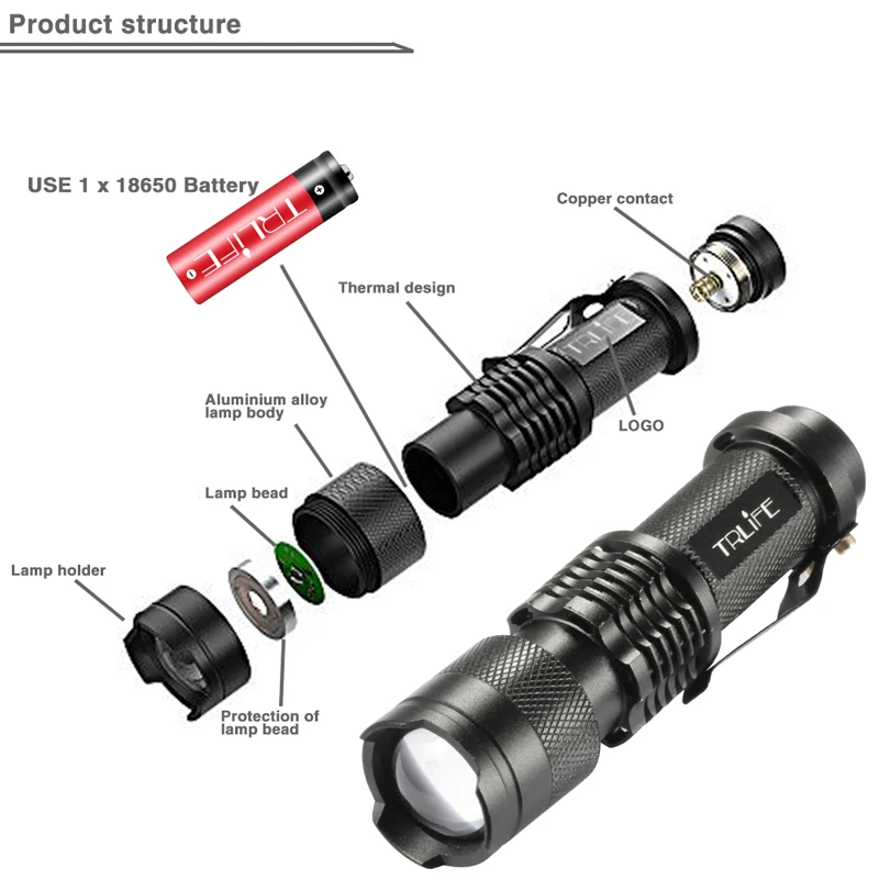 7) изготовлен из высококачественного алюминиевого сплава 6061T, этот фонарик прочный и достаточно прочный для длительного ежедневного использования