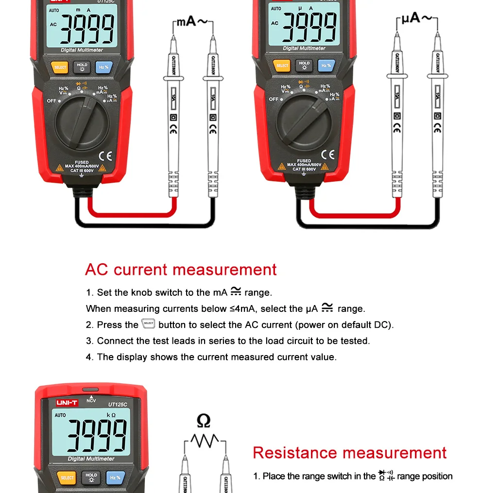 UT125C карманный цифровой мультиметр