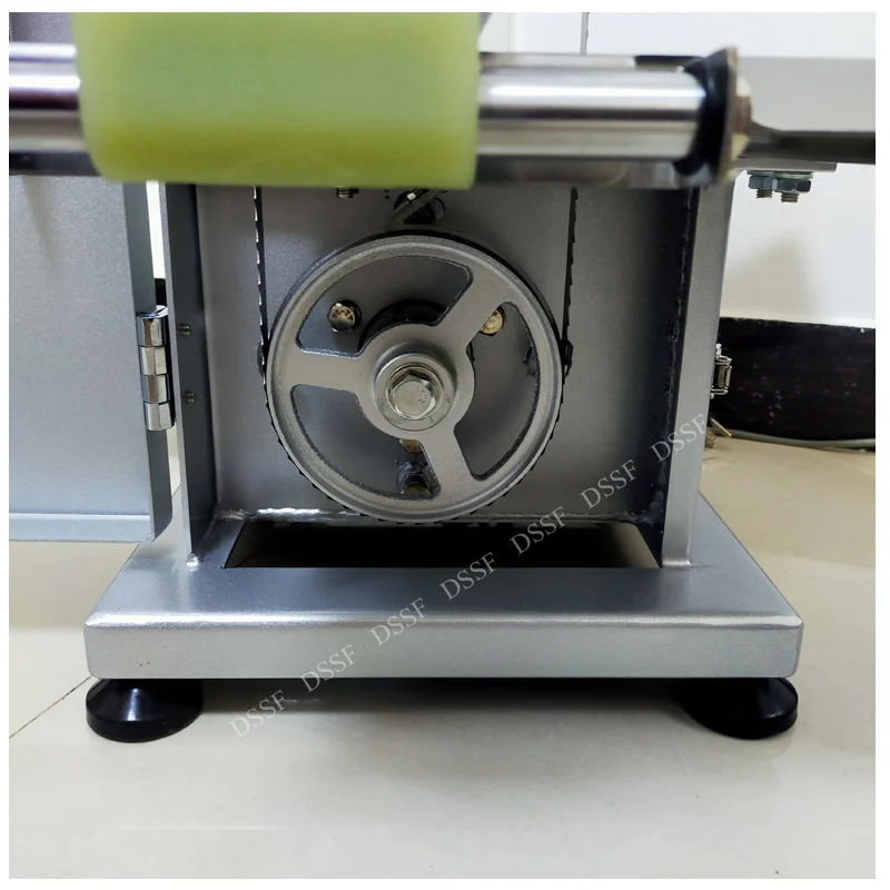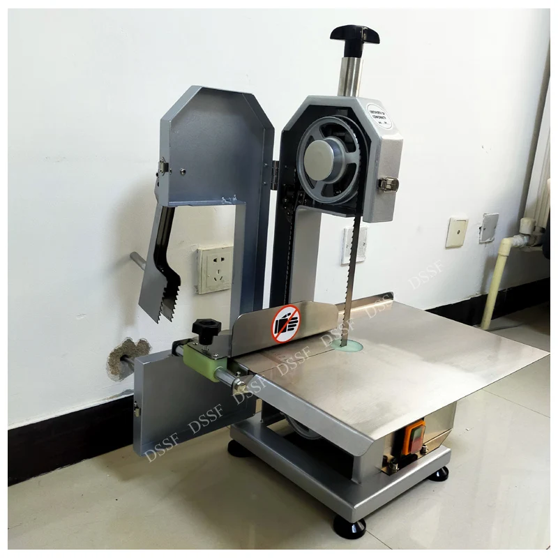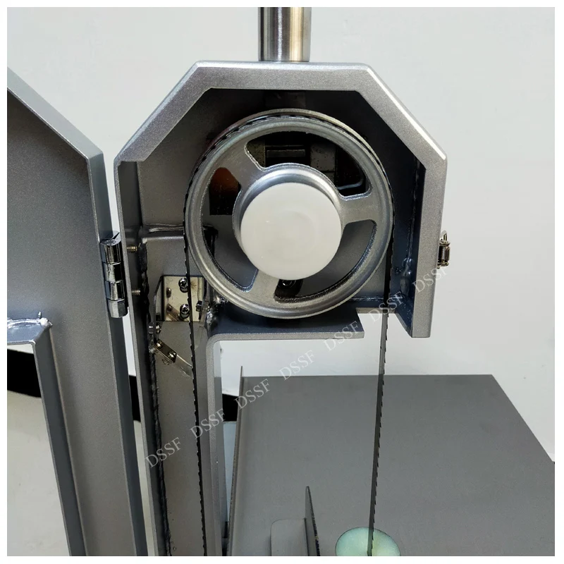 2. Откройте дверь коробки и установите ленту пилы на колесо ремня в направлении зубцов. Затяните ленту пилы и поверните ручку в верхней части станка до тех пор, пока пила не соскользнет. Помните, что слишком тугая пила может повлиять на срок службы ленточной пилы, слишком свободная пила не может работать должным образом. Чтобы проверить стабильность полотна пилы, поверните рукой Верхнее колесо ремня, чтобы проверить стабильность полотна пилы. Если полотно пилы смещено, Используйте профессиональные инструменты, чтобы повернуть винт тонкой настройки по часовой стрелке; Если полоса пилы смещена внутрь, можно сделать регулировку против часовой стрелки. Станок не может нормально запускаться, пока лента пилы не будет плавно повернута и не закроет дверь.