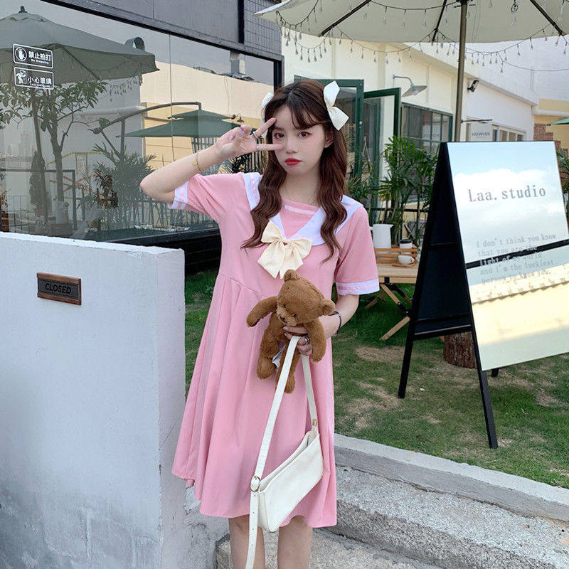Летнее выпускное платье в японском школьном стиле; Корейская школьная форма; Милая плиссированная одежда в стиле Лолиты для девочек; Темно-синее платье с короткими рукавами и матросским воротником