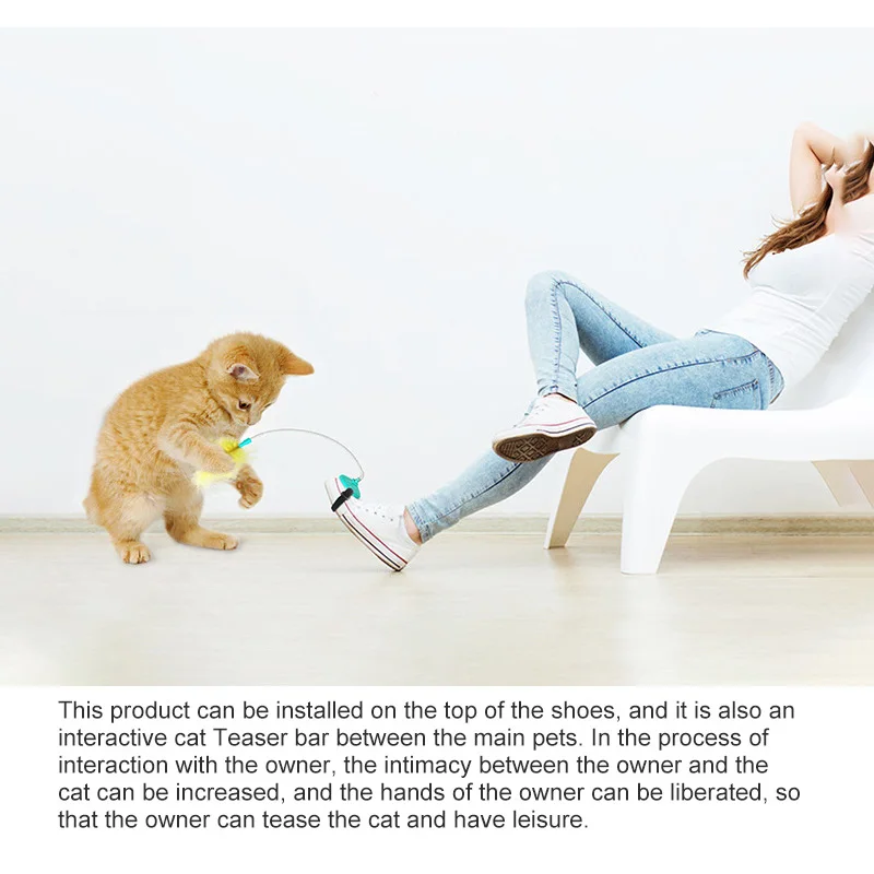 4. Этот продукт может быть установлен на верхней части обуви, также является интерактивной кошачьей палкой для ног. В процессе взаимодействия с владельцем, он может увеличить интимность между владельцем и кошкой, а также освободить руки владельца, так что владелец может играть с кошкой и расслабиться.
