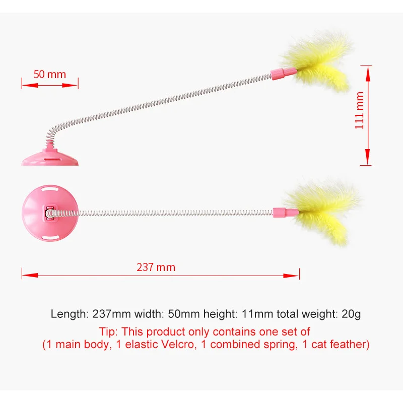 3. Благодаря деятельности в области головы/шеи кошки, вы можете управлять высокими эластичными неровными колебаниями пружинного цикла, так что Верхняя часть изделия движется пером, чтобы привлечь внимание кошки, позвольте кошке укусывать, гоняться за другими видами деятельности, увеличивать активность кошки, улучшать физическую форму кошки, Улучшите интеллект кошки.