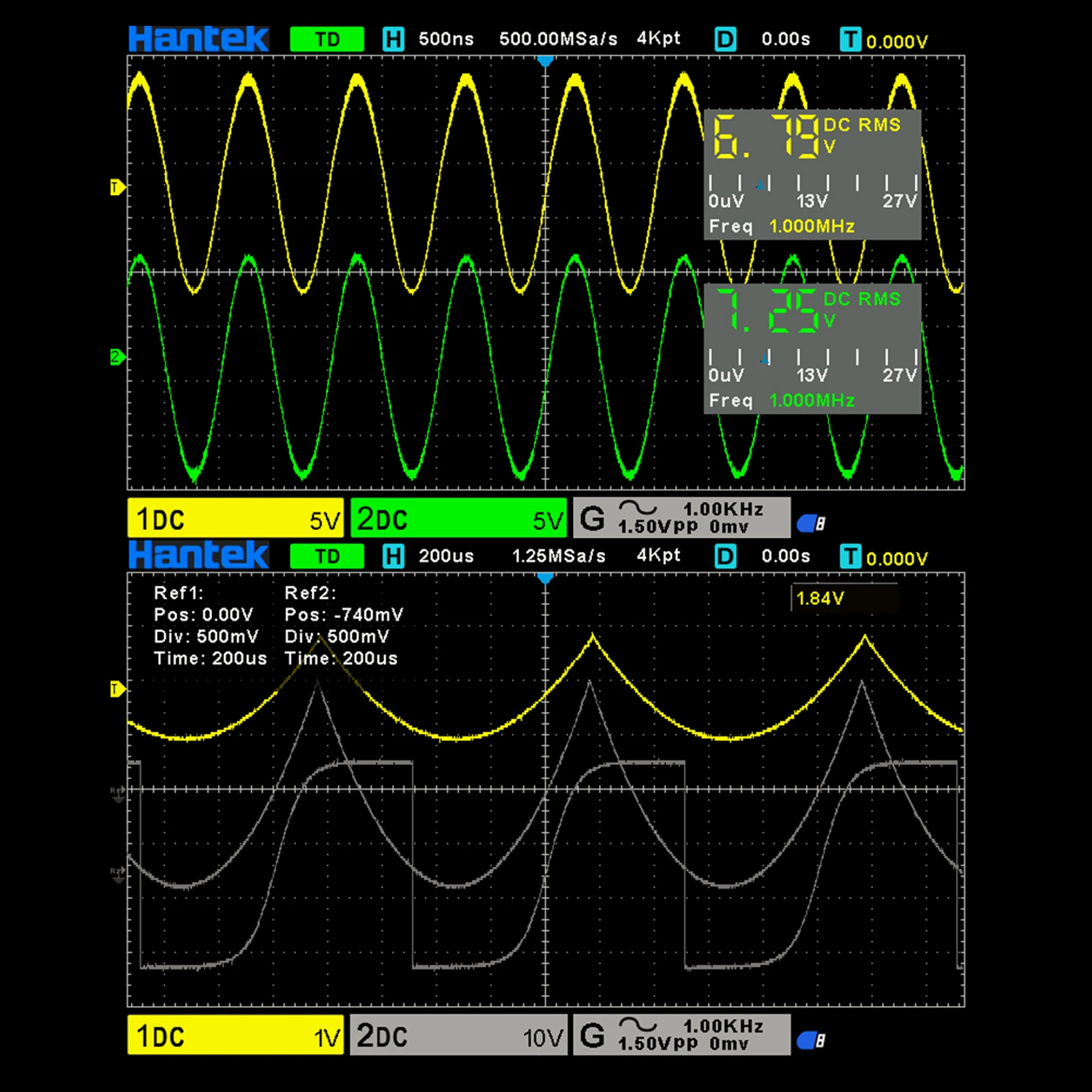 Полоса пропускания ana-log 150 МГц и частота дискретизации 1GSa/s.