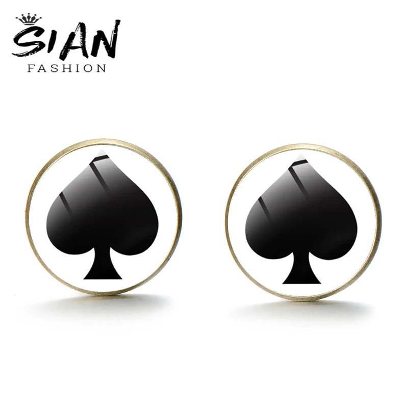 SIAN Poker Spades Q серьги стеклянная выпуклая поверхность принты модная металлическая серьга-гвоздик модная для женщин или мужчин ювелирные изделия аксессуары