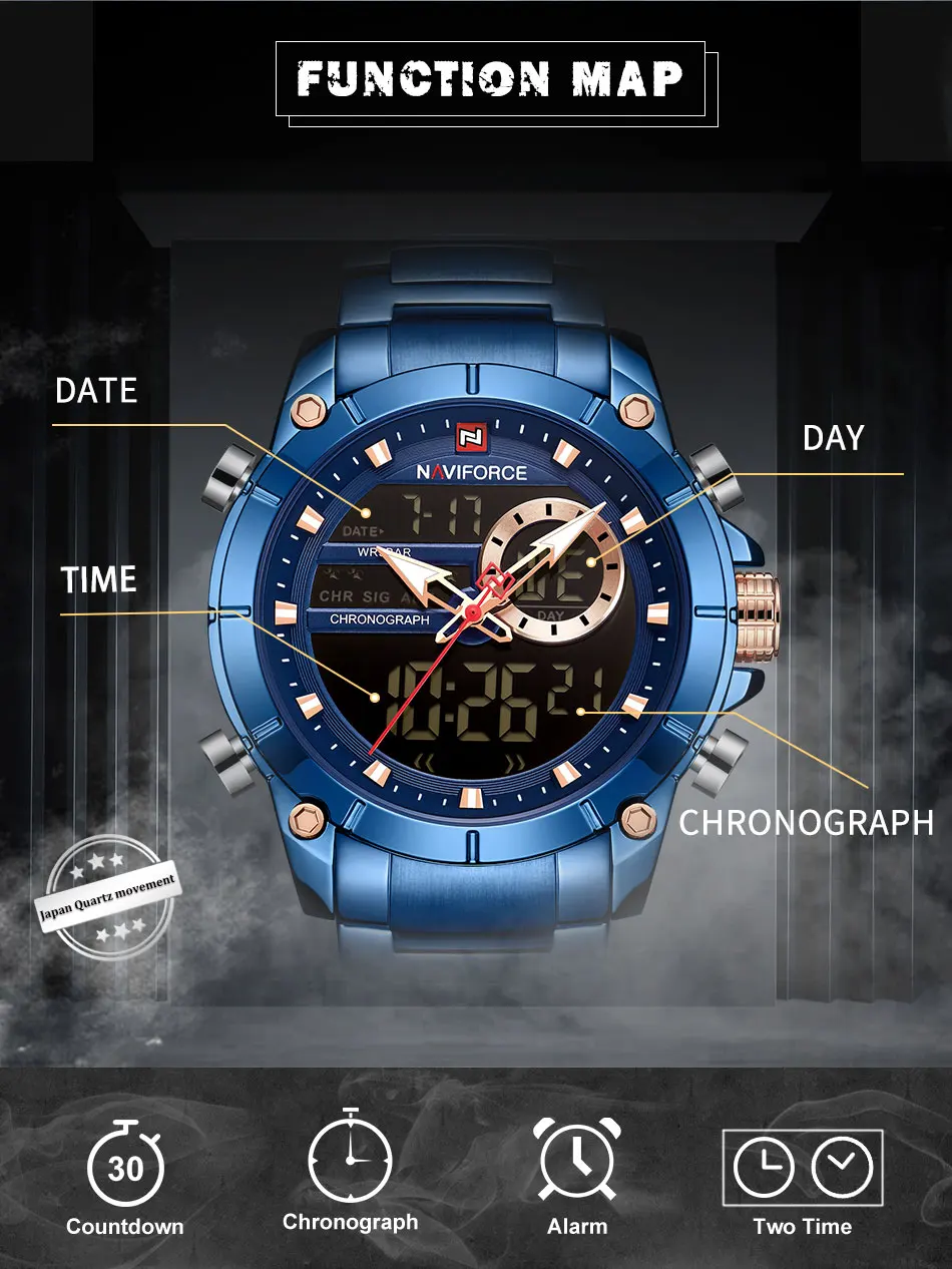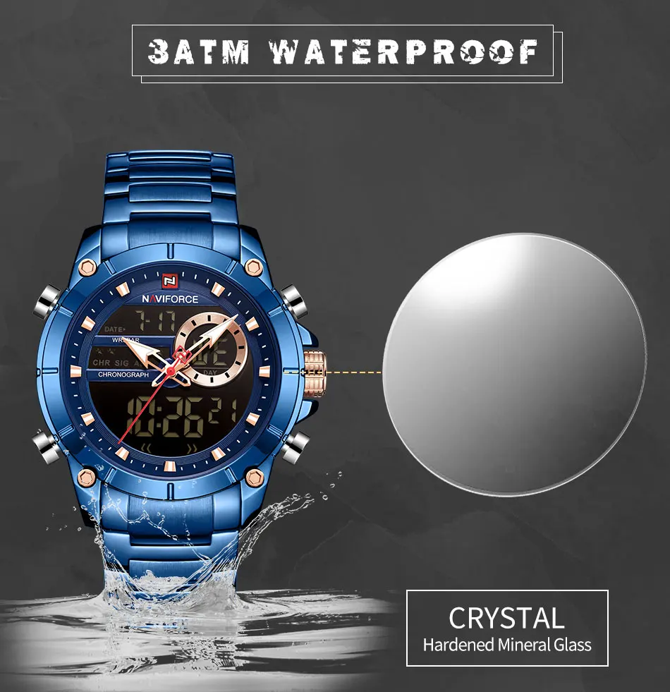 Роскошные Брендовые мужские золотые часы NAVIFORCE светодиодные цифровые спортивные часы кварцевые часы мужские армейские военные часы Relogio Masculino светящиеся водонепроницаемые автоматические часы с хронографом и датой повседневные наручные часы мужские