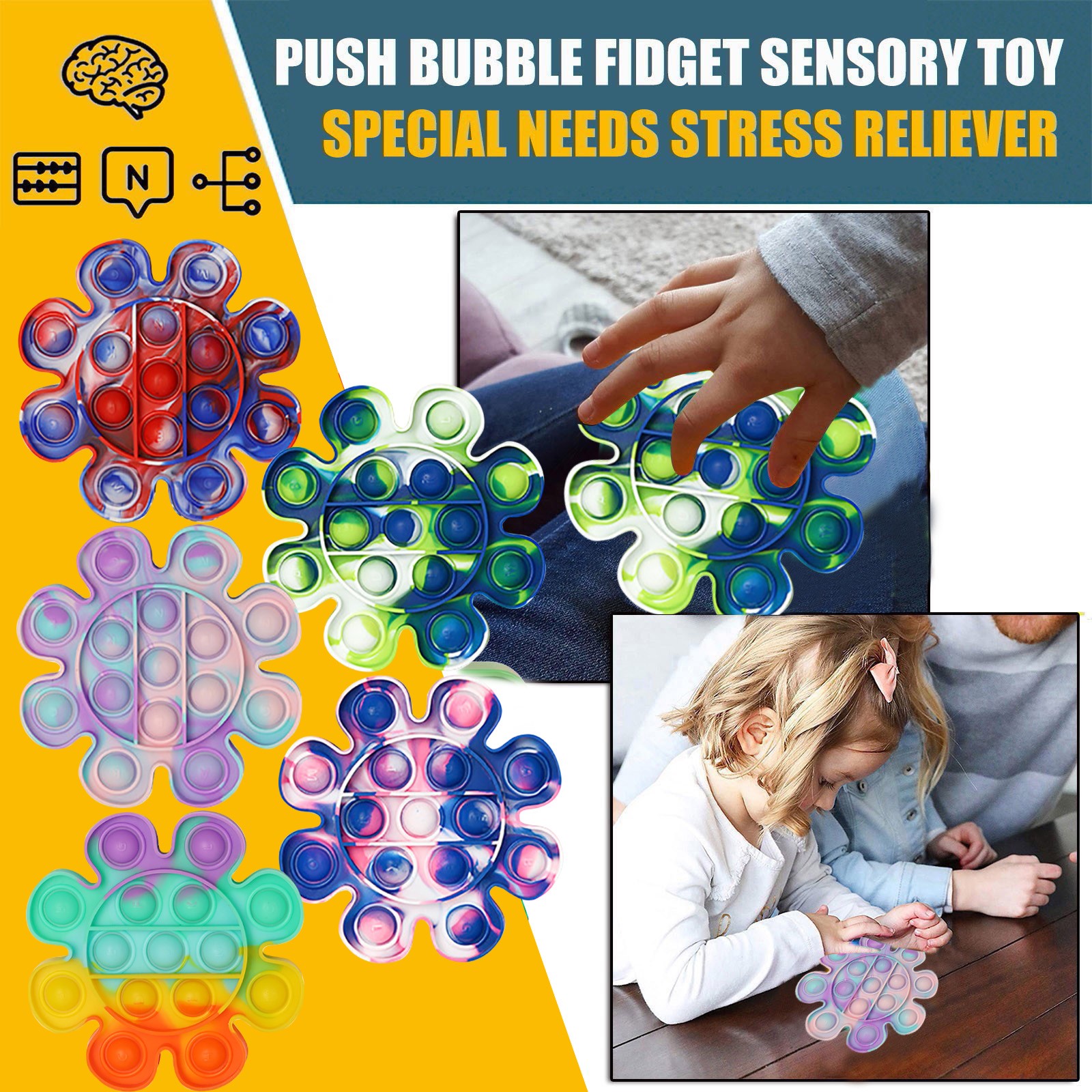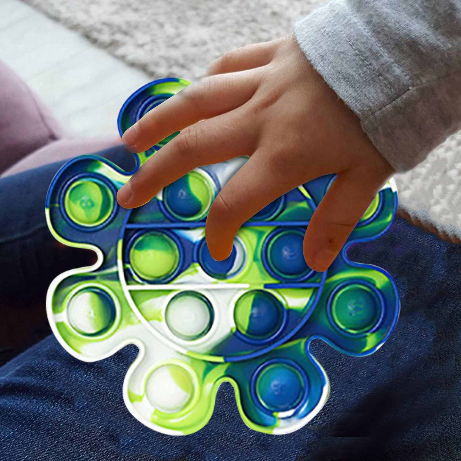 Усть нажимаем мышь пузырьками вниз и они издают легкий щелкающий звук; Затем переворачиваем ее снова и начинаем снова! Бесконечно многоразовые и моющиеся.