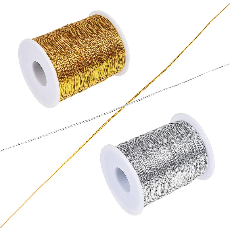 Характеристики: Материал: полиэстер Размер: 23 метра/рулон Цвет: Золотой/Серебряный Хорошее использование упаковки подарочной коробки Обратите внимание: веревка не эластичная