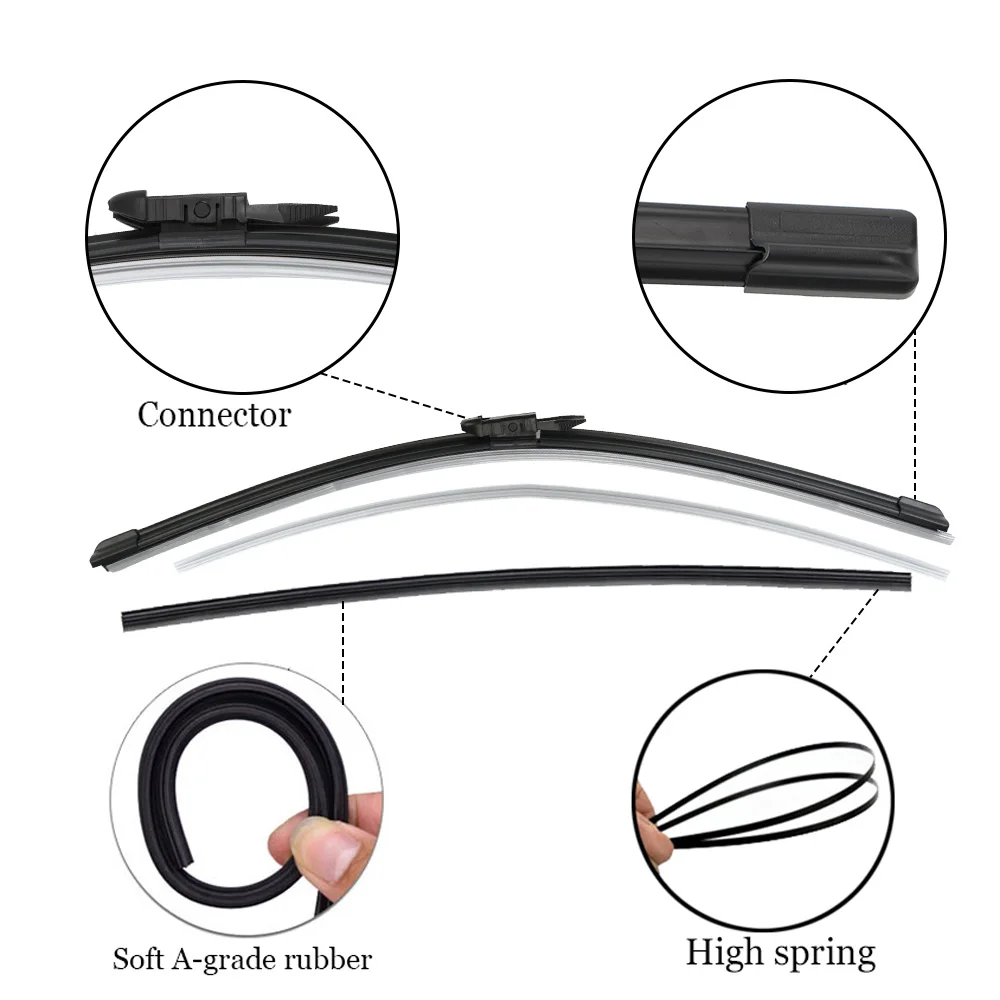 Специально Смешанная резина обеспечивает максимальную гладкость, вибрация автомобильного стеклоочистителя, вызванная силой ветра, устраняется.