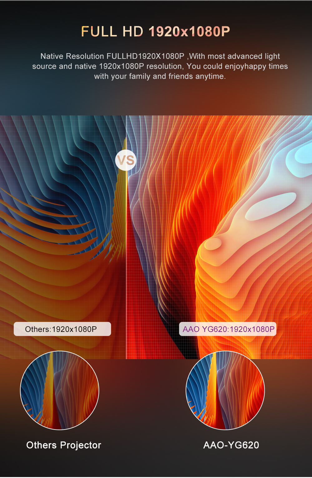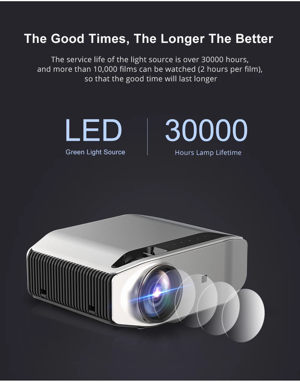 Используя самый совершенный источник света и оригинальное разрешение 1920x1080P, вы можете в любое время наслаждаться счастливым временем с семьей и друзьями.