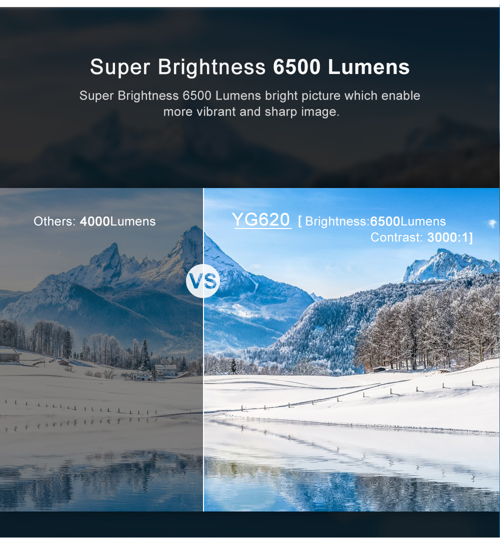 Супер яркость 6500 люмен яркое изображение, которое позволяет более яркое и четкое изображение.