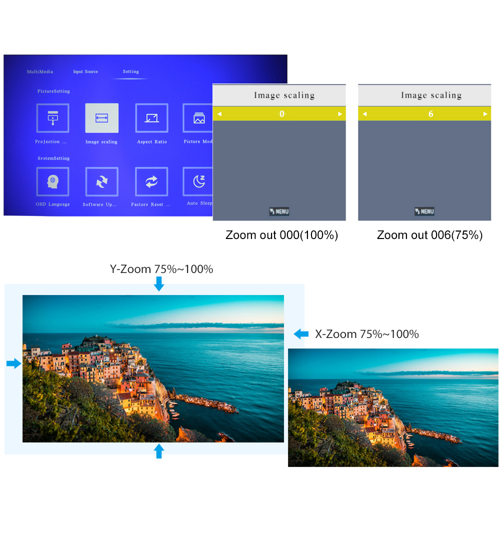 ЗУМ 75%-100%.Эта функция работает при воспроизведении видео и изображений.