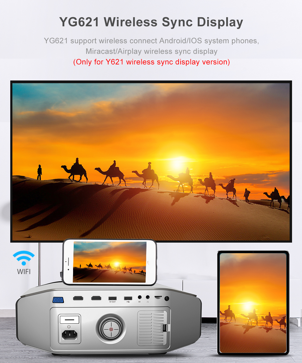 YG621 Поддержка беспроводного подключения Android/IOS Системные телефоны, Miracast/Airplay Беспроводная синхронизация дисплея
