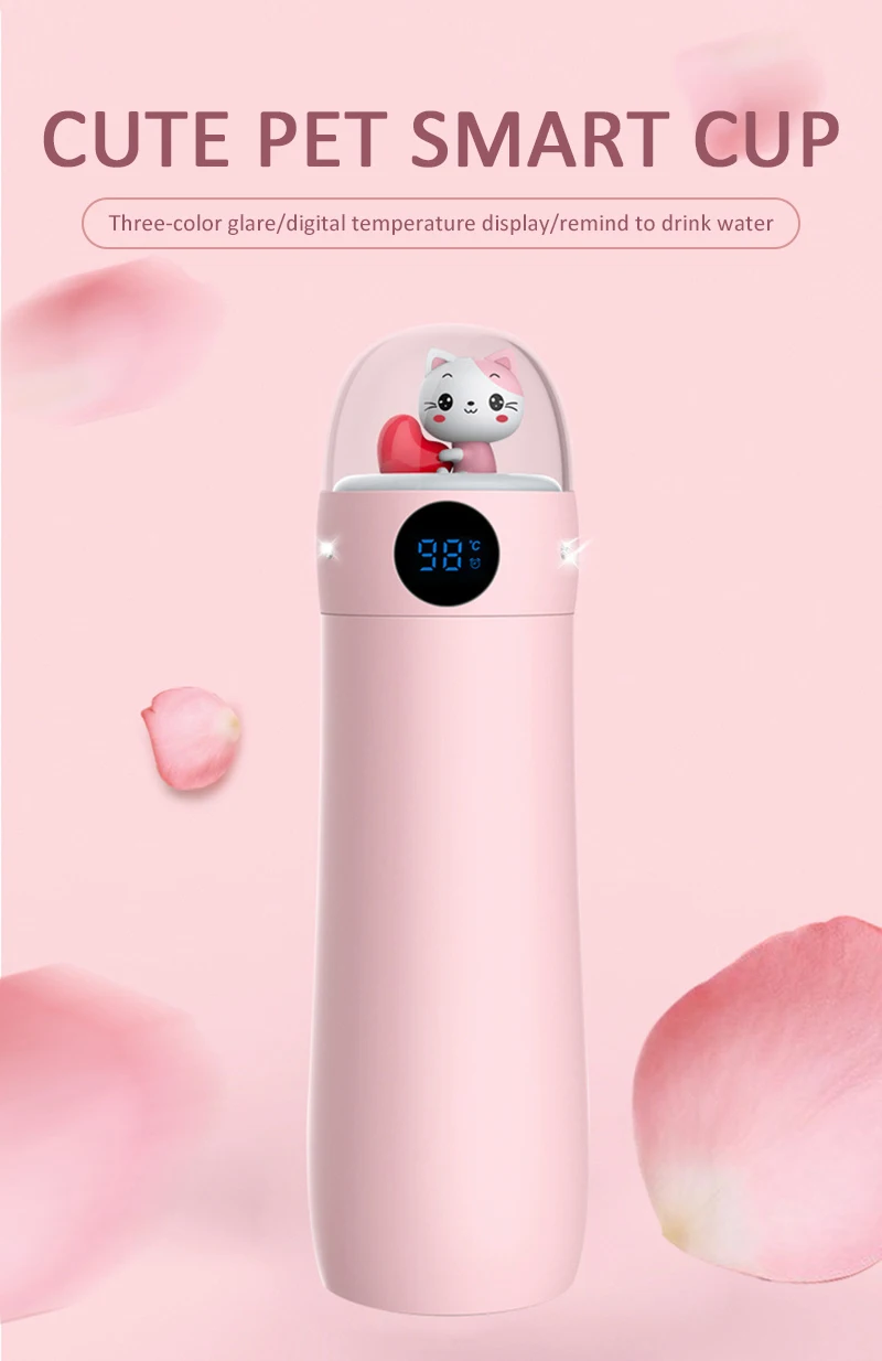 Милый питомец умная чашка для воды, три цвета бликов/температуры цифровой дисплей/напоминание пить воду