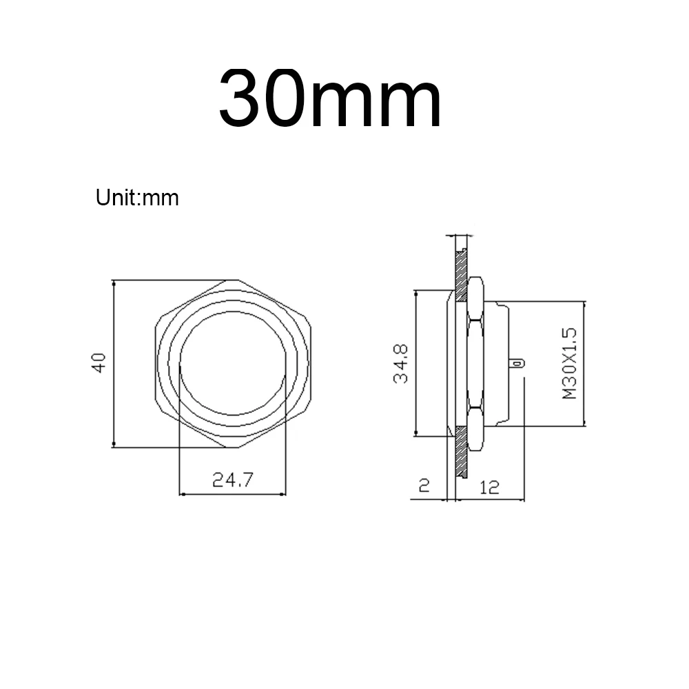 У кнопки Нет подходящий разъем, покупайте только один разъем. Если вам нужны специальные спецификации, пожалуйста, свяжитесь со службой поддержки клиентов, мы можем настроить их. Контакт: Стерлинговое Серебро Материал: никелевая латунь Цвет: серебристый Светодиодный цвет: белый, желтый, красный, зеленый, синий Номинальная мощность переключателя: 2А/250В переменного тока Пресс расстояние: ≤ 0,5 мм Класс водонепроницаемости: IP65 Светодиодный Напряжение: 3-6 в, 12 В, 24 В, 220 В Тип операции: Мгновенный самосброс (например, кнопка автомобиля или компьютера) Размер отверстия: 12/16/19/22/25/30 мм