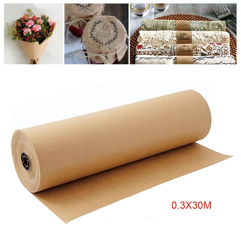 Размер: 0.3x30m. Крафт-бумага, подходит для упаковки подарков.