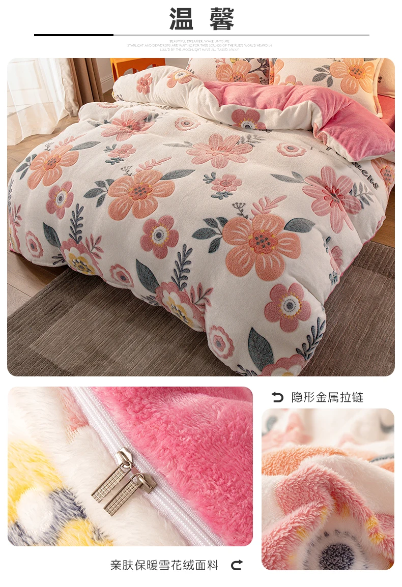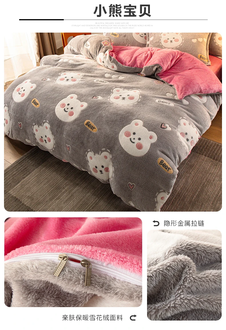 DescriptionDescription: ★★ Include:1pcs*Quilt Cover ★★ Material:100% Polyester ★★Tips:Doesn't Include pillowcase detail: The thickened flannel is heated quickly within three seconds, long-lasting heat preservation, high-density fabric, to ensure no lint, No fading, no ball, no shrinkage Size: ★★ Quilt Cover Size: Size: 150 x 200cm 1pcs 59 x 78.7inch weight 1.400kg 180 x 220cm 1pcs 59 x 76.6inch weight 1.800kg 200 x 230cm 1pcs 78.7 x 90.5inch weight2.200kg 220 x 240cm 1pcs 86.6 x 94.4inch weight2.500kg Tips : Product only include Quilt Cover . If you need the pillowcase and bed sheet andFour-piece/three-piece, you can found it on our shop :) [Our Guarantee]: If you are not satisfied with the products you receive, please contact us immediately. We will help you and compensate you. Washing Tips: ★★ Washing at normal temperature, do not bleach, hang to dry, Don't ironing, Conventional dry cleaning Season: ★★ autumn winter Please Note: ★★ In order to keep the color fresh, It is better to add salt to the water for your first washing. ★★ Due to the light and screen difference, the item's color may be slightly different from the pictures. ★★ Please allow 1-5cm differences due to manual measurement.