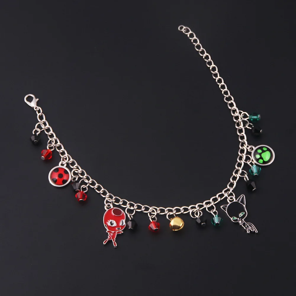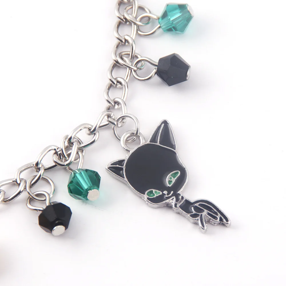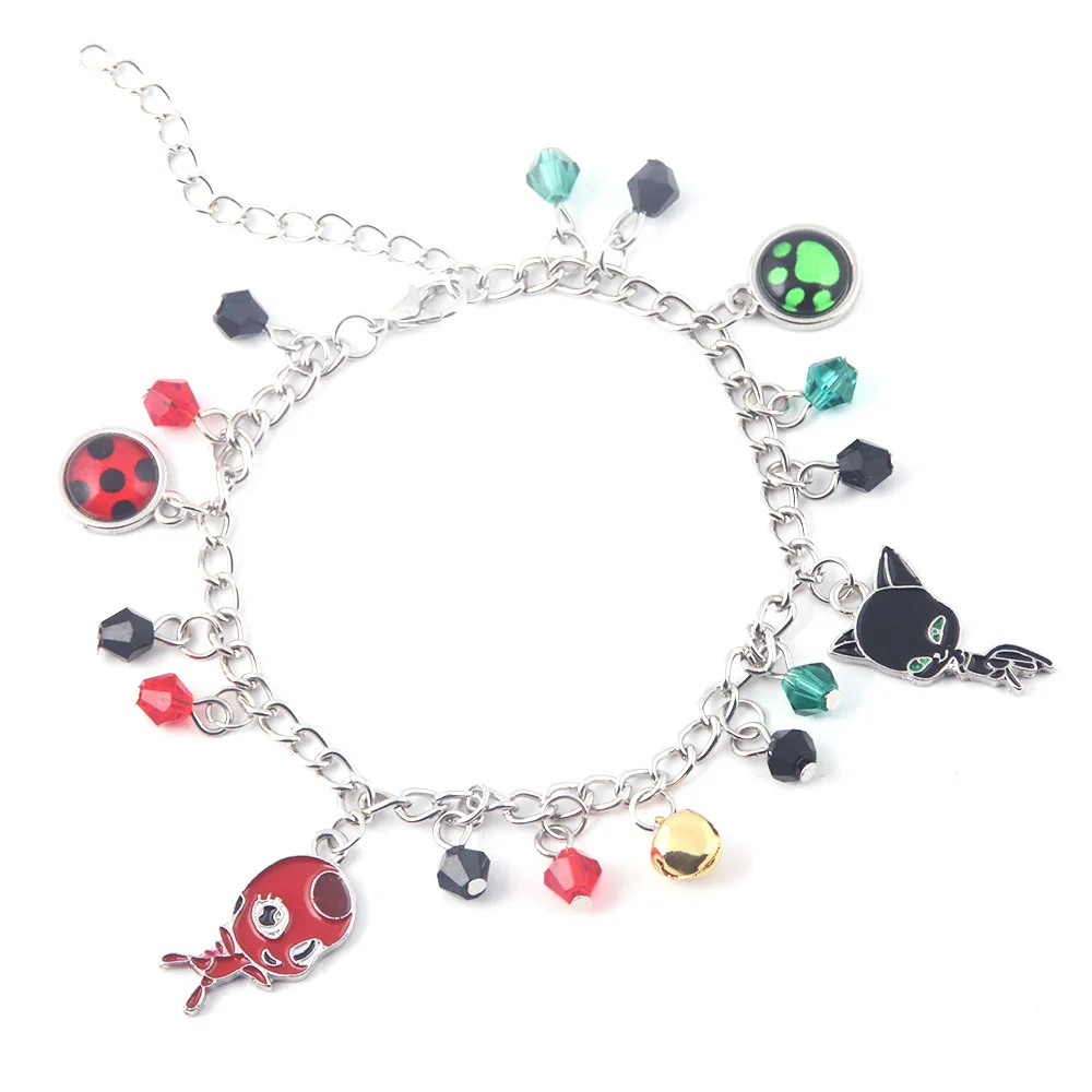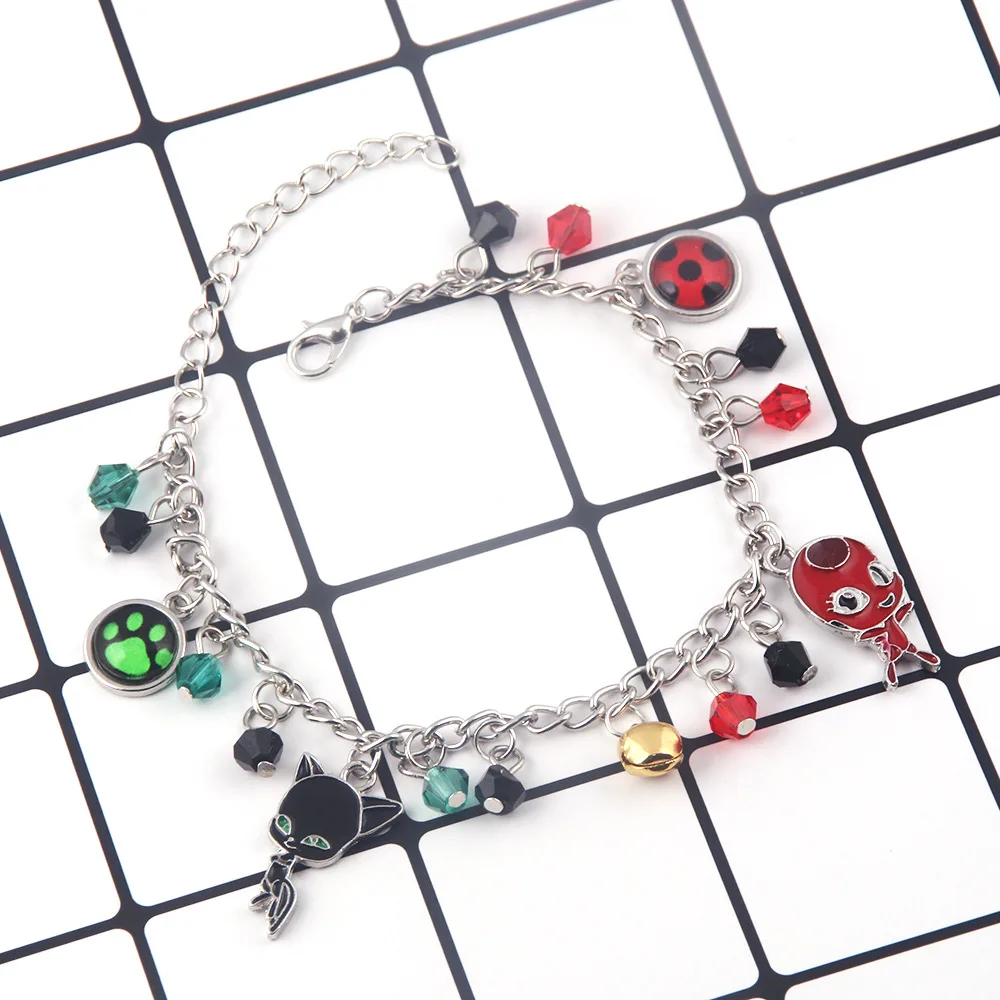 Модный очаровательный браслет с изображением божьей коровки, черного кота, зеленой лапы, колокольчика, Noir Ocean Anime, регулируемый браслет из бисера для детей, для девочек, эмо, ювелирное изделие, подарок