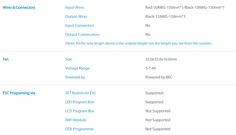 Xrotor pro серии бесщеточный ESC параметры и спецификации