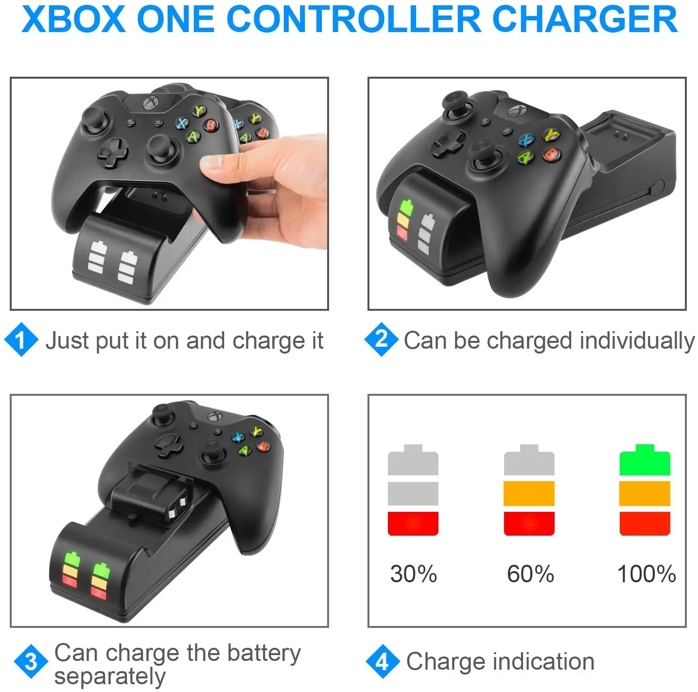 Совместимость: Это зарядное устройство Xbox One поддерживает контроллеры Xbox One/One S/One X. Но обратите внимание, что он не совместим с контроллерами Xbox One Elite