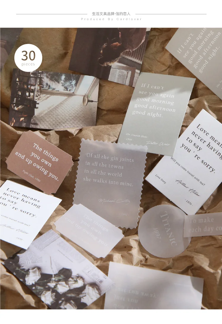 Type:Source Material Pack Material:Sulfuric Acid Paper+Kraft SKU:4 Designs Size:76*112mm Quantity:30 Pcs Weight:8g Package include : 10 Patterns x 3