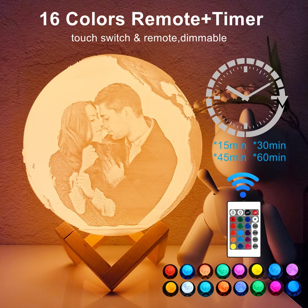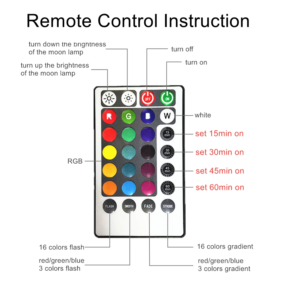 1. Сенсорный выключатель: Коснитесь металлического кольца в нижней части лунной лампы, чтобы включить/выключить светильник и изменить цвет.