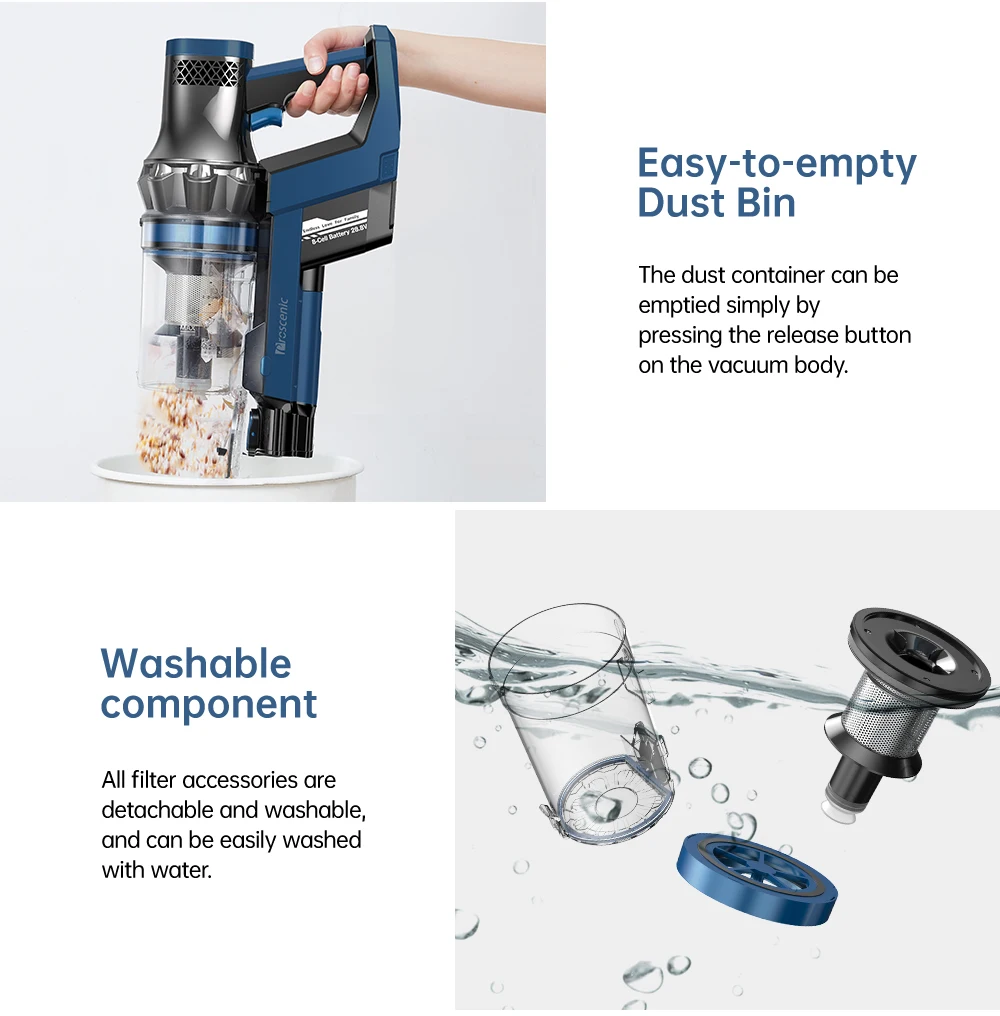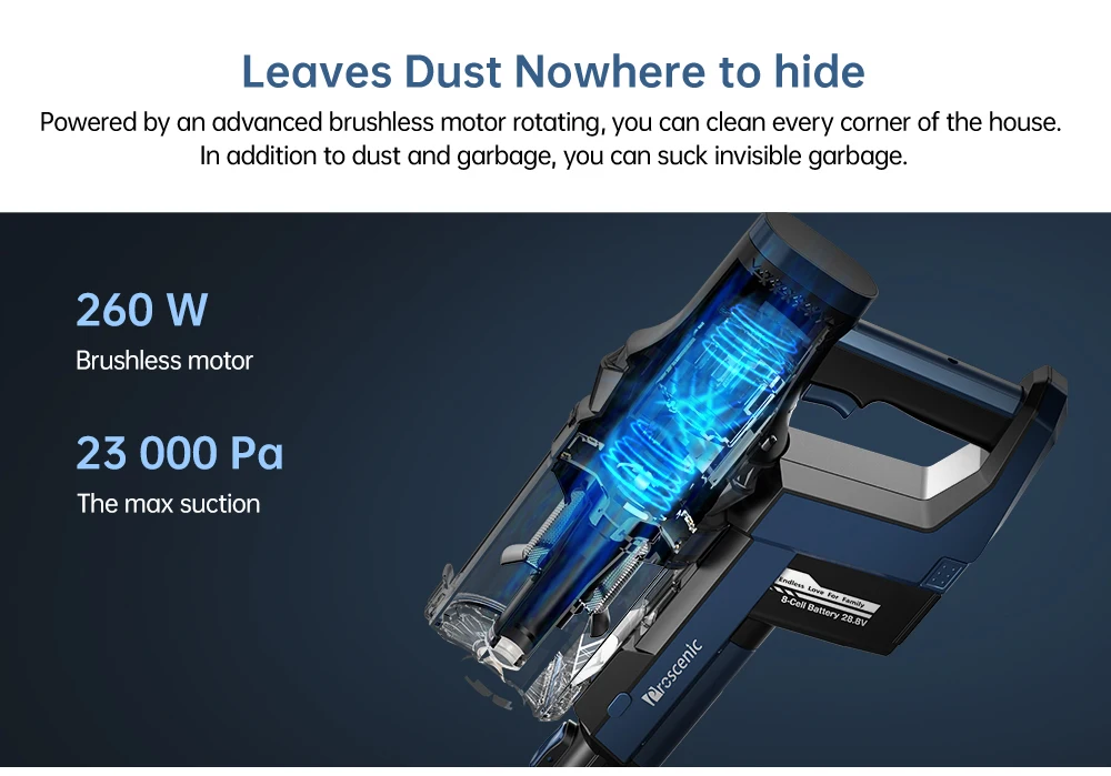 Мощность 260 Вт и скорость 80000 об/мин обеспечивают вам супер мощность. С мощностью всасывания 25 кПа, чтобы лучше помочь очистить скрытые волосы домашних животных, мусор и грязь на полу и коврах.